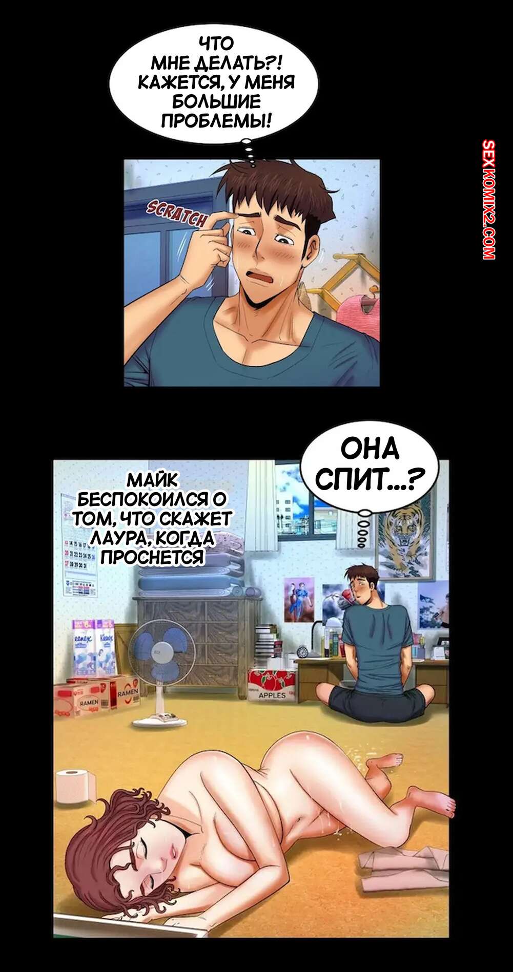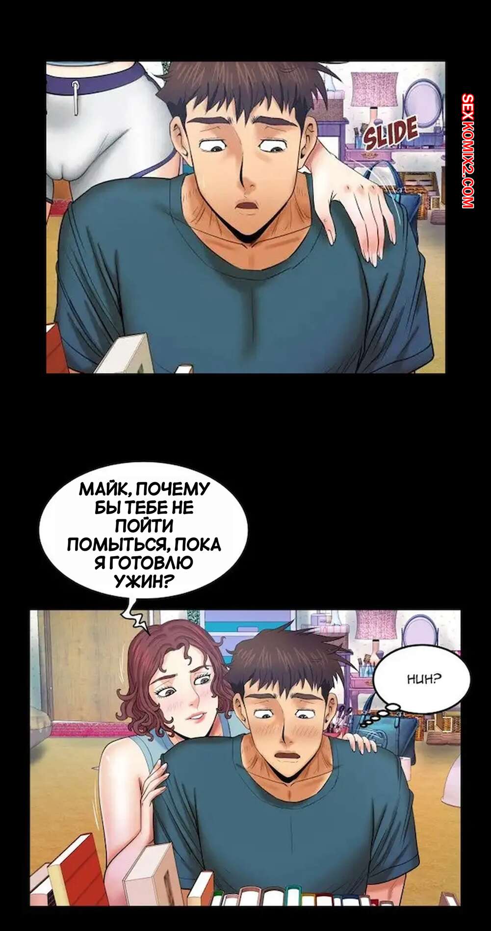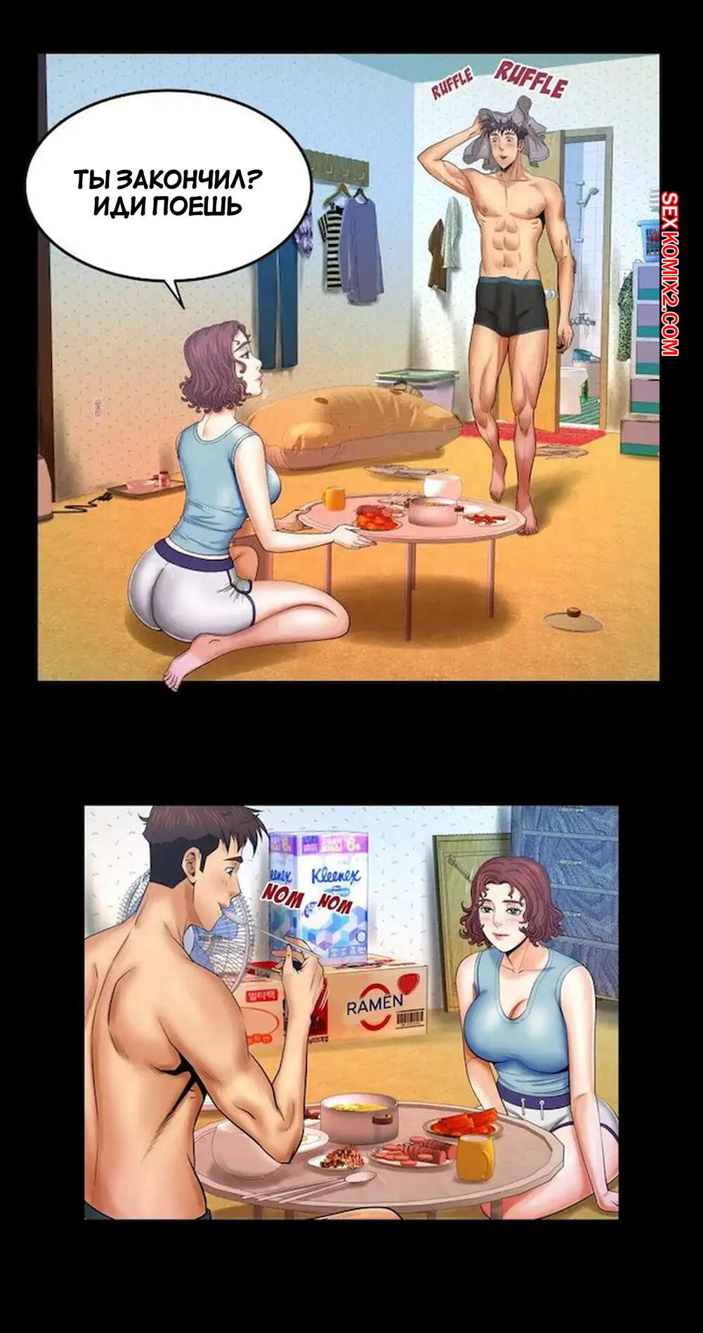Порно комикс Моя тетя. Без цензуры. Часть 14. My Aunt. Toomics Парень застал сексуальную брюнетку голой после душа в позе раком и не смог сдержаться. Он вставил свой хуй в пизденку девушки и хорошенько ее выебал, доставив ей удовольствие.