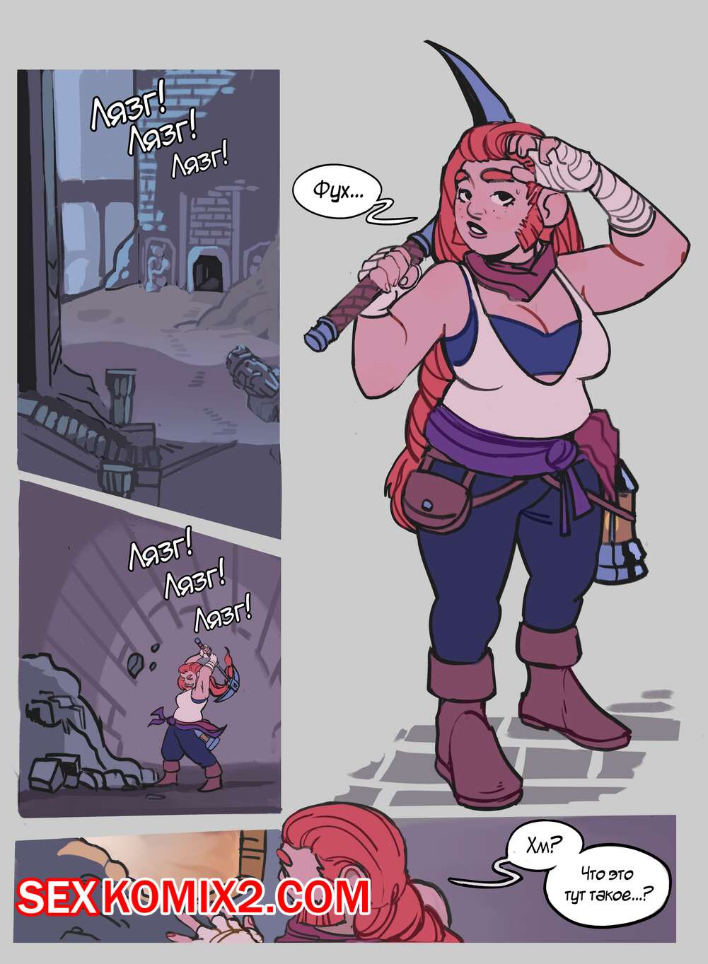 Порно комикс Подземное сокровище. TinySkald Девушка отправилась в подземелье в поисках сокровищах и там застряла в стене. Два проходящих мимо парня решили воспользоваться моментом и хорошенько выебали девушку.