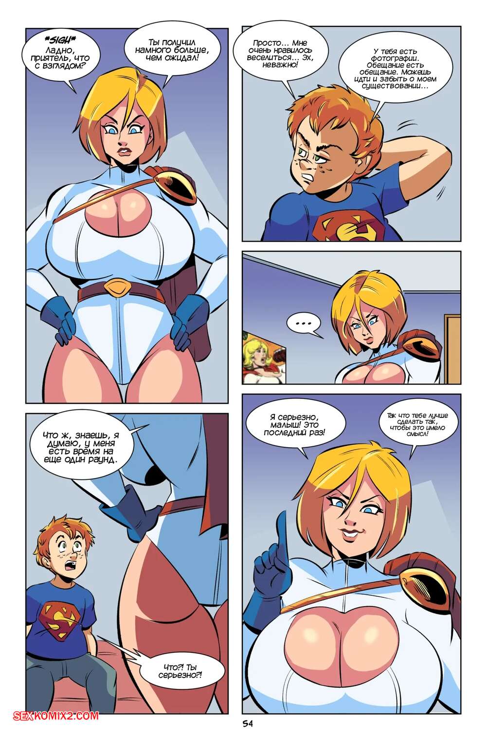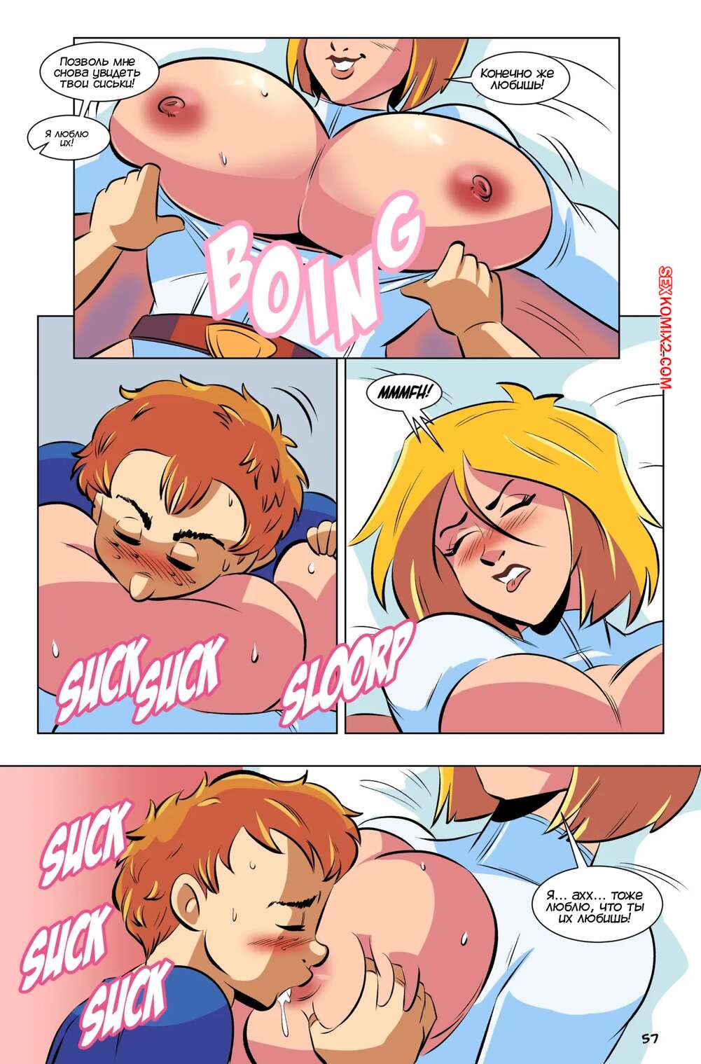 Порно комикс DC. Силовая игра. Power Play. glassfish Горячая блондинка милфа была очень возбуждена и решила повеселиться со своим сыном. Красотка встала на колени перед парнем и отсосала его большой хуй, после чего он кончил ей в ротик.