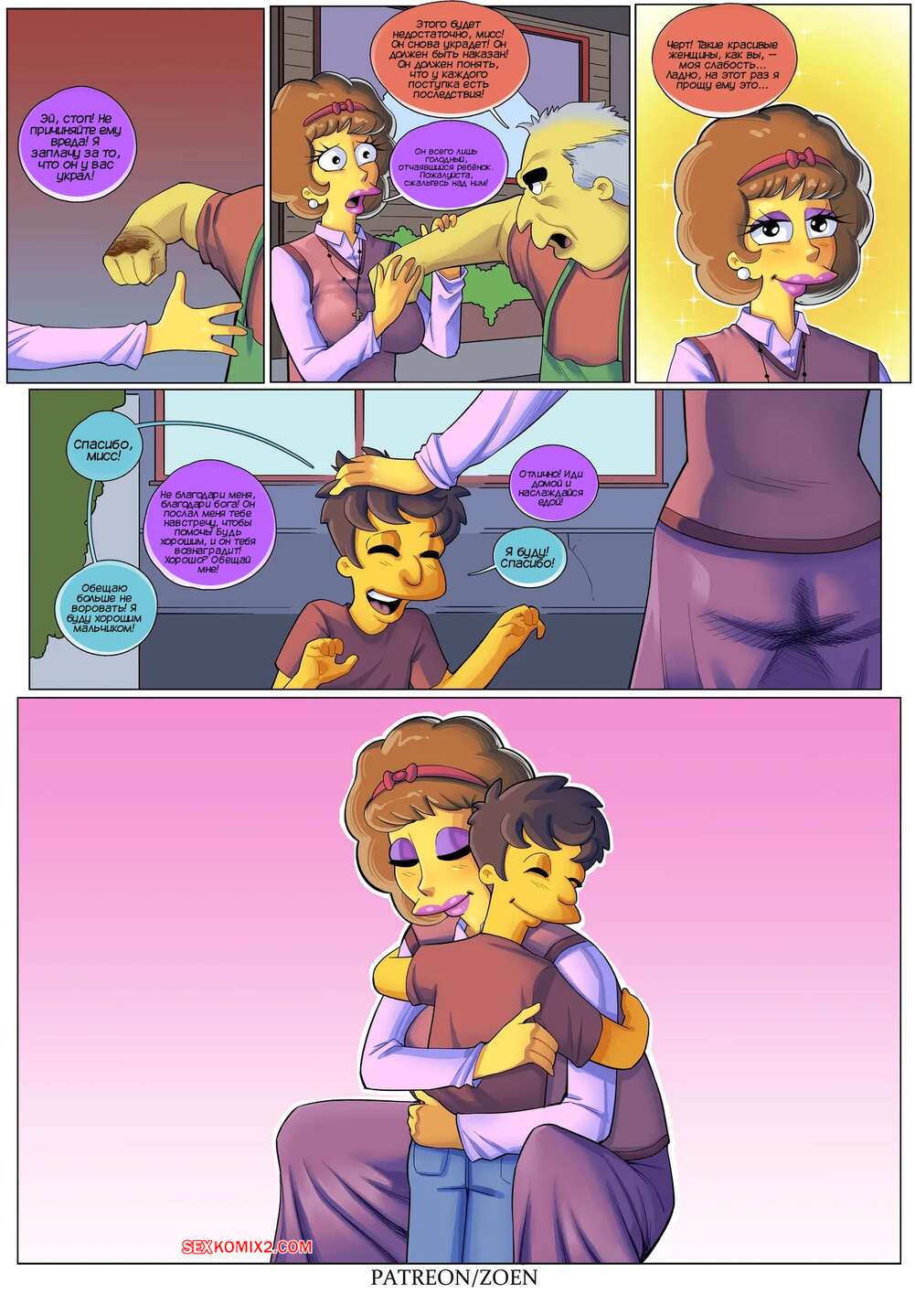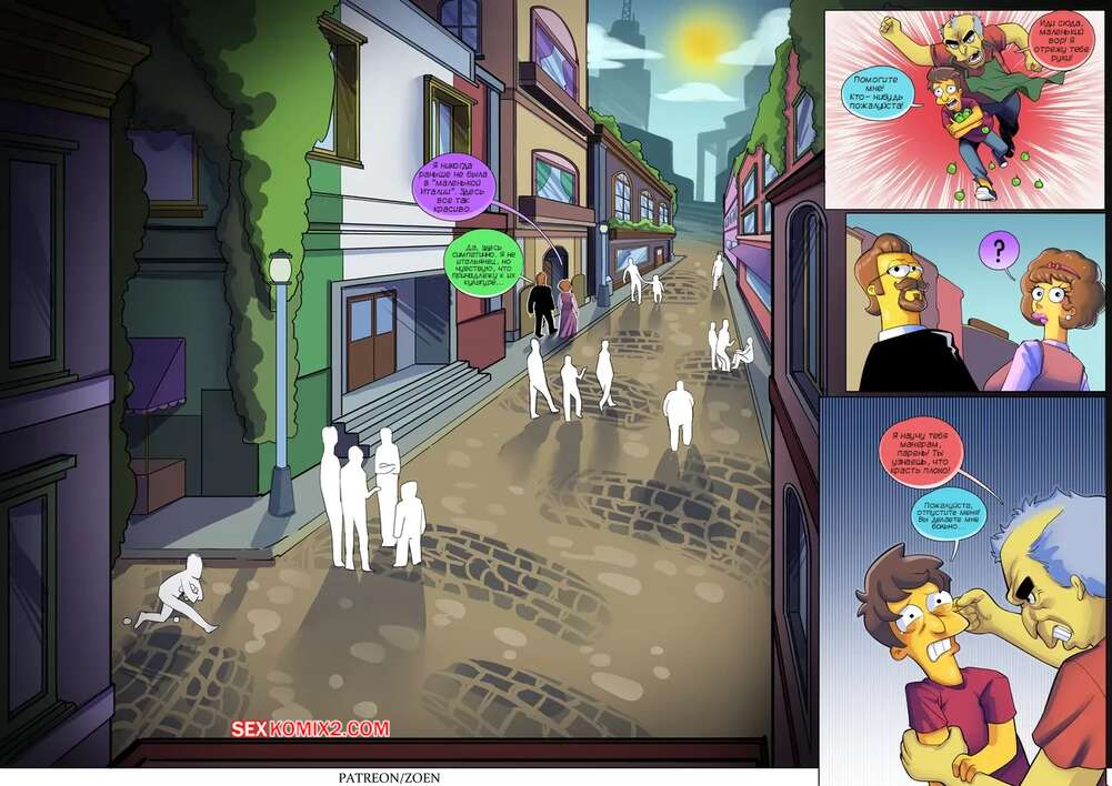 Порно комикс Симпсоны. Плохой парень. Bad Boy. Zoen Нэд проснулся в постели со своей сексуальной женой. Пока милфа спала голой, он стал рассказывать о своем детстве, чтобы поведать каким плохим парнем он был и как достиг такой шикарной женщины.
