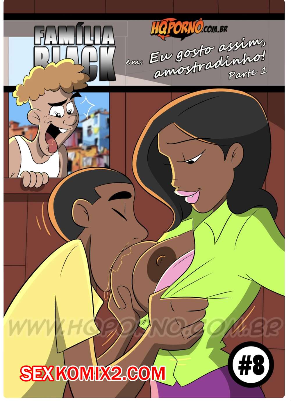 Порно комикс Семейка черных. Часть 10. Familia Black. HQporno Юный парень спалил, что жена Баяно трахается с новичком. Он пробрался к ней домой и начал шантажировать, поэтому красотка разделась и дала юнцу выебать свою пизденку.