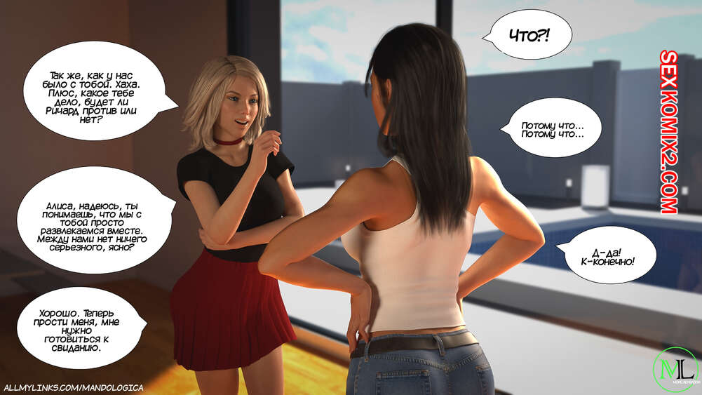 Порно комикс Только для тебя. Часть 40. Just For You. MandoLogica Девушки отправились в магазин одежды с утра пораньше. Мия стала подбивать Алису остаться наедине со своей горячей мамой в примерочной. Брюнеточка сперва сопротивлялась, но не устояла перед напором Мии.