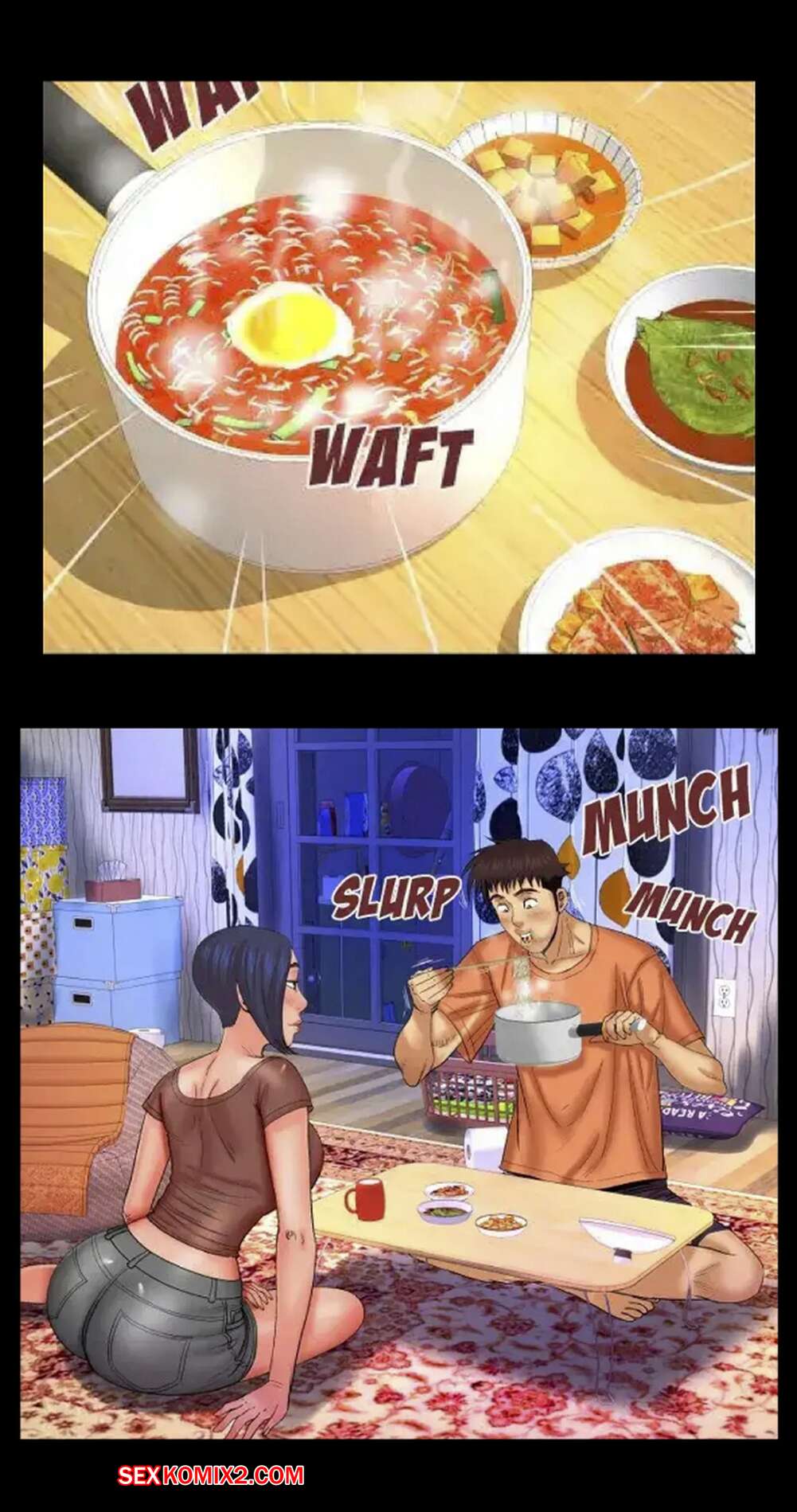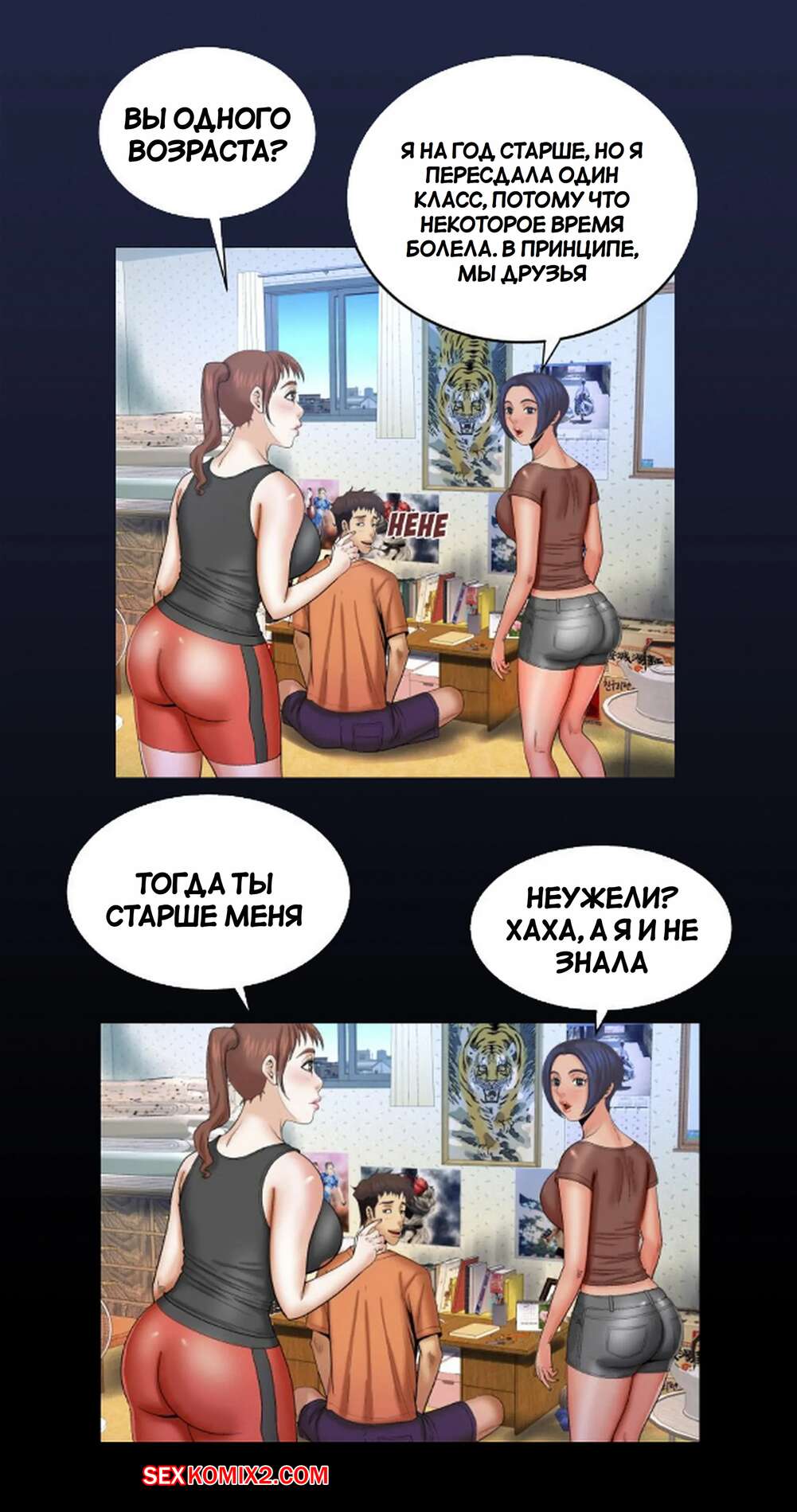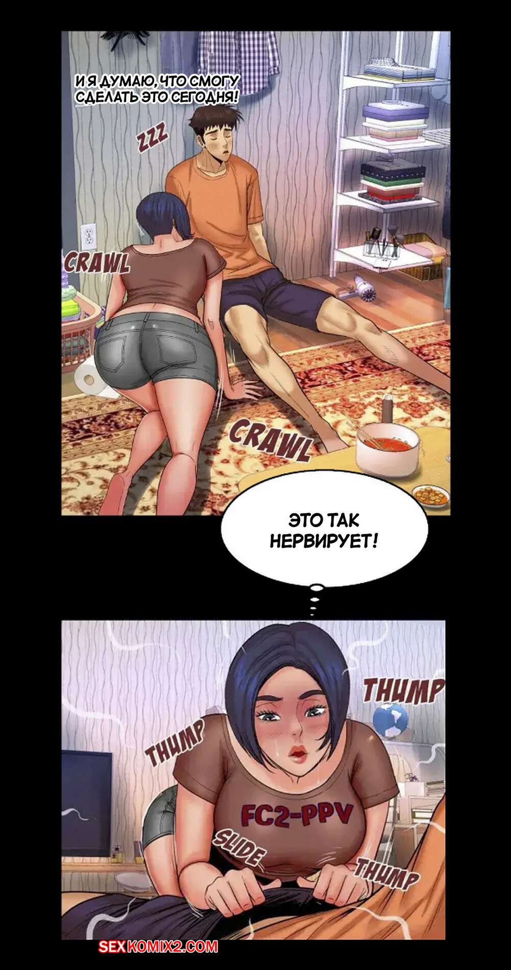 Порно комикс Моя тетя. Без цензуры. Часть 32. My Aunt. Toomics Горячая брюнетка затащила парня к себе в комнату, желая повеселиться. Она усадила парня на пол и оседлала его большой хуй, желая как следует насладиться и кончить.