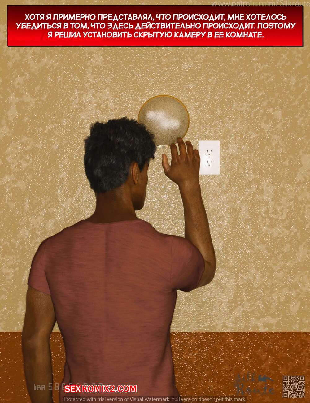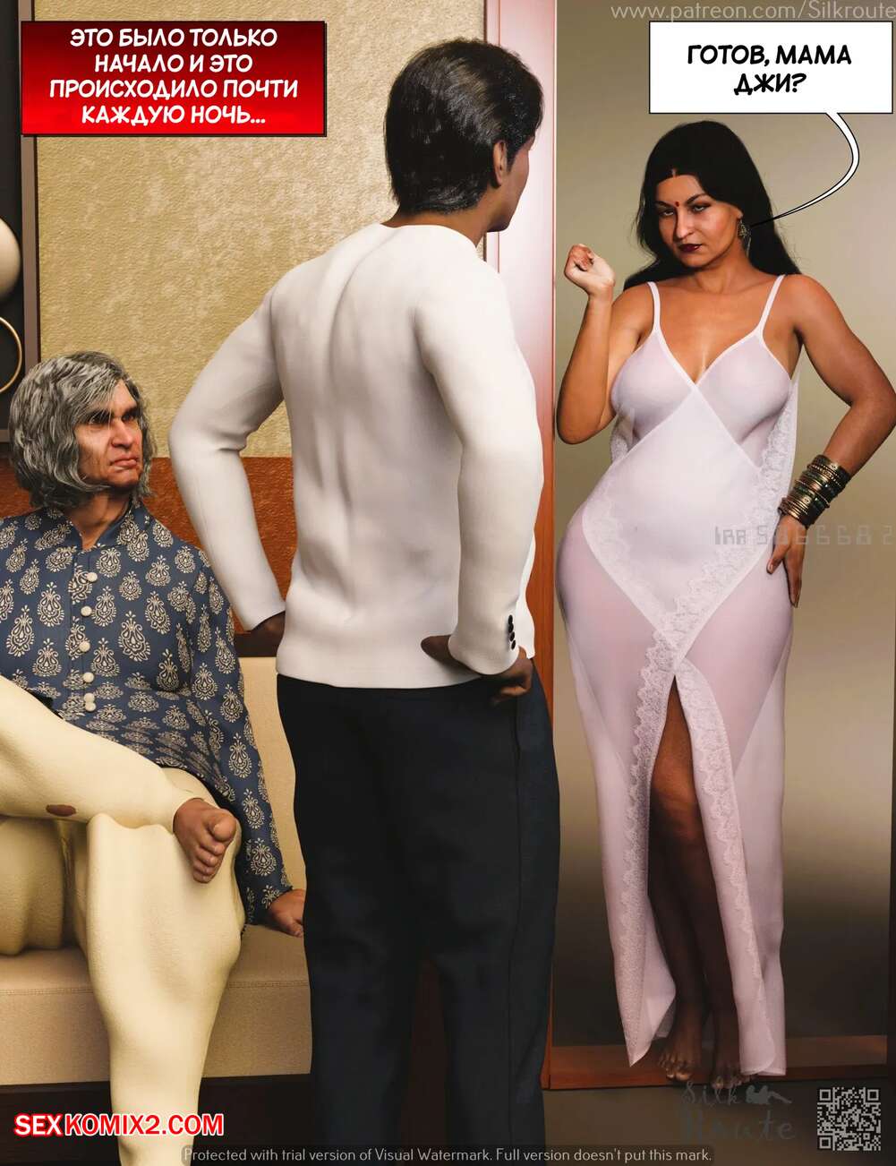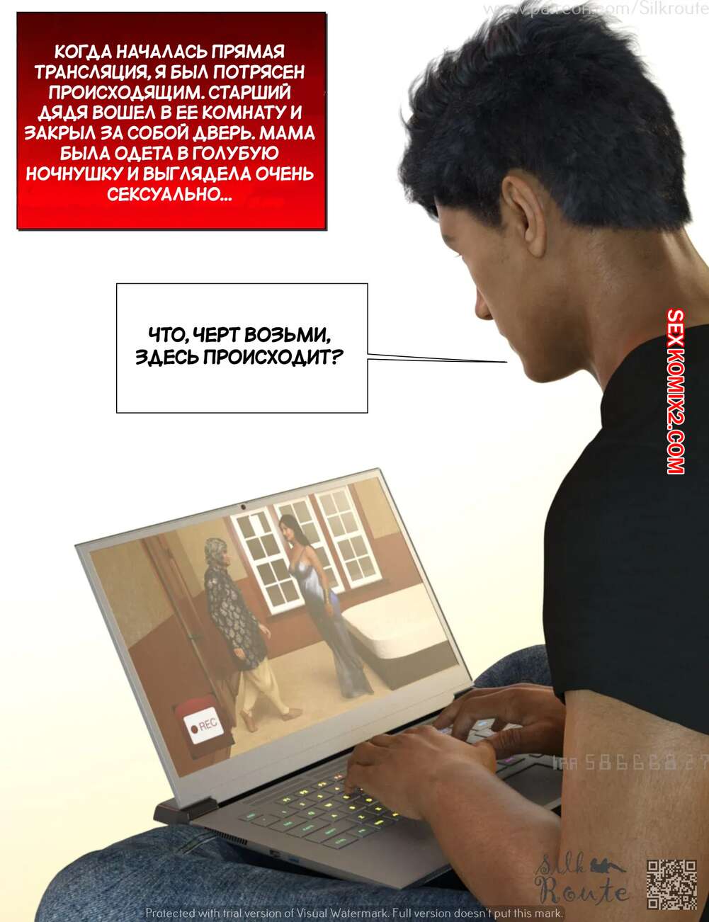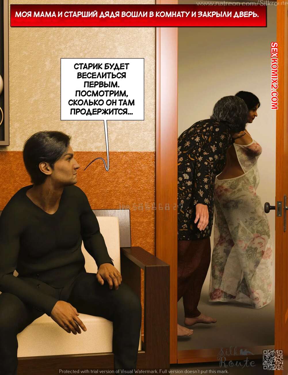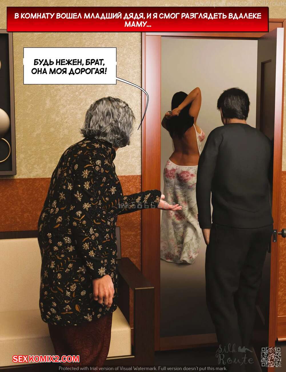 Порно комикс Для семьи. Часть 2. For The Family. Silk Route, Ira Raman Парень установил камеру слежения в комнате своей горячей мамки. Он увидел, как милфа уединилась с двумя мужиками и отсосала их большие хуи, после чего дала им себя выебать.