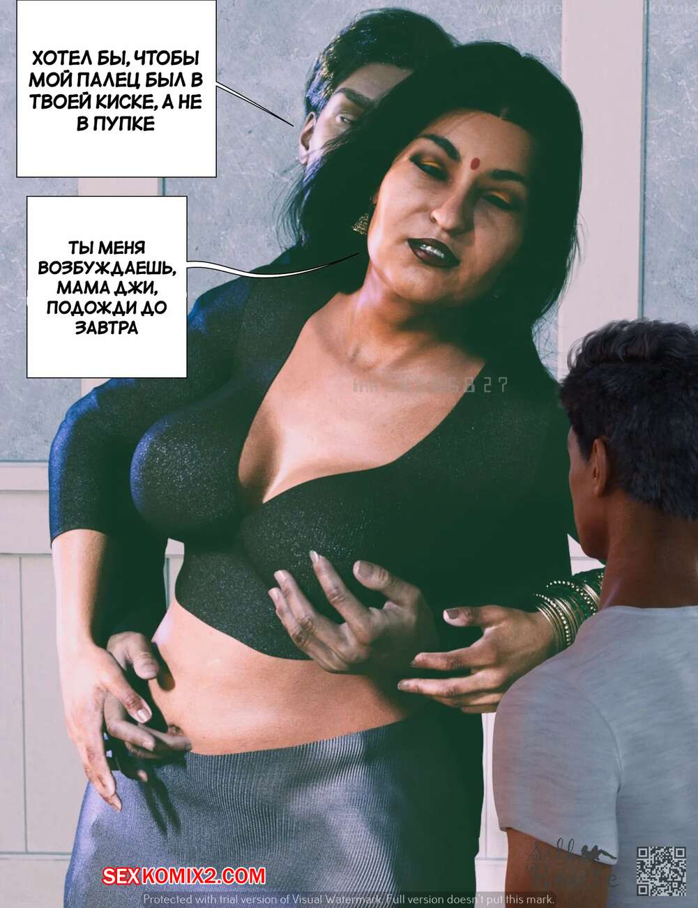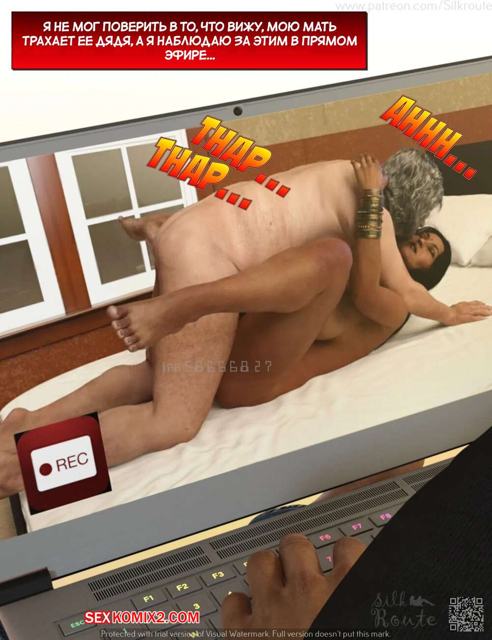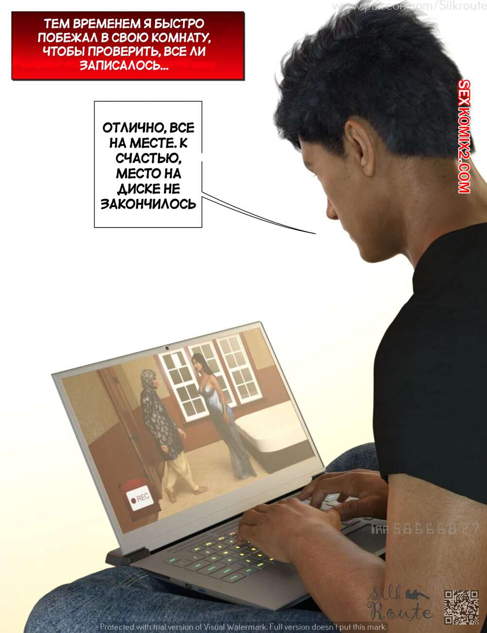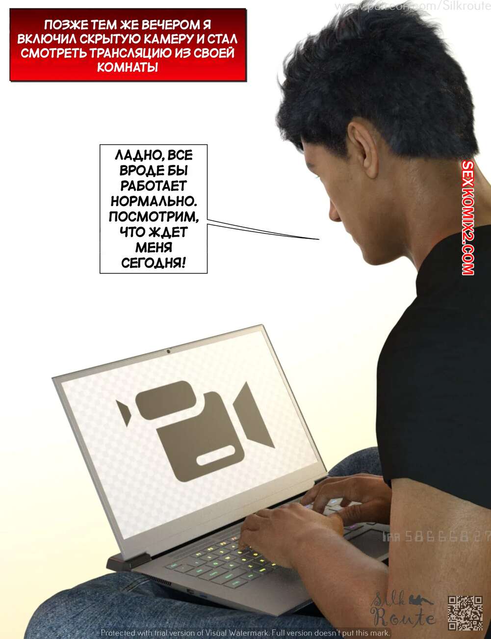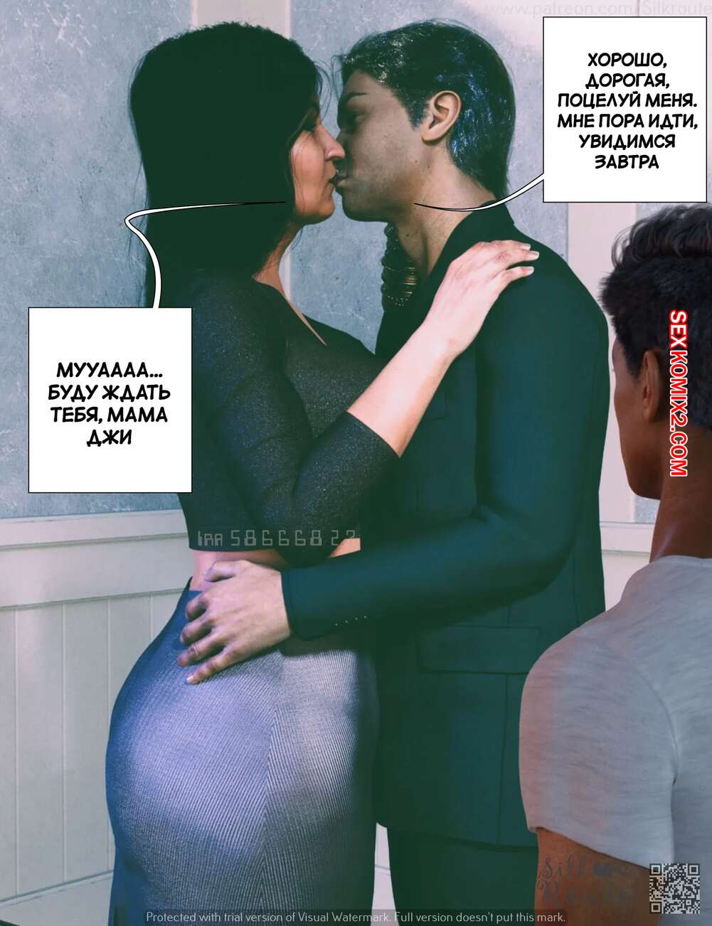 Порно комикс Для семьи. Часть 2. For The Family. Silk Route, Ira Raman Парень установил камеру слежения в комнате своей горячей мамки. Он увидел, как милфа уединилась с двумя мужиками и отсосала их большие хуи, после чего дала им себя выебать.