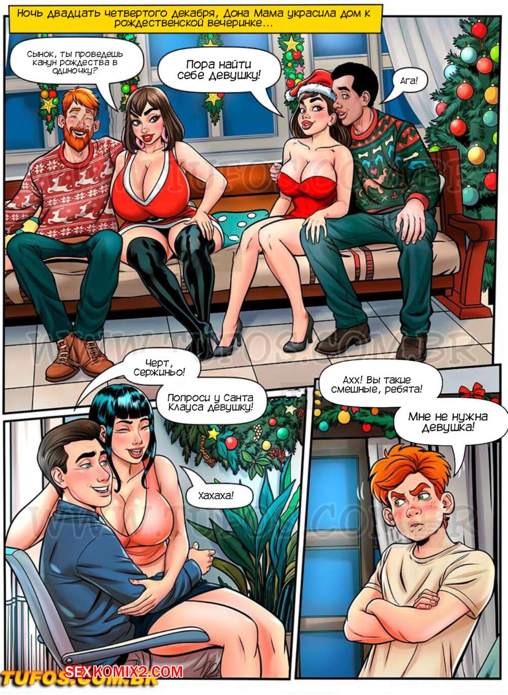 Порно комикс Донья Мама. Часть 5. Dona Mama a maezona da galera. Tufos Горячая милфа решила сделать особый подарок на рождество своему сыну. Красотка пришла ночью в комнату к сыну и показала ему свои огромыне сиськи, после чего дала выебать свою пизденку.