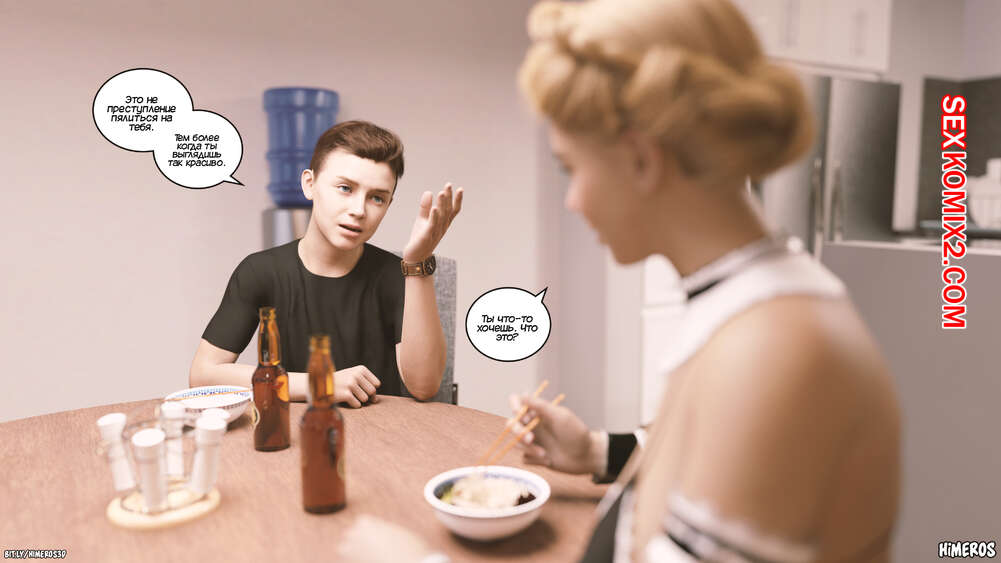 Порно комикс Вечное лето. Часть 4. Eternal Summer. Himeros3D Леон собирался покинуть дом своей мамы, но она попросила его остаться. Голая милфа подошла поближе к сыну и стал страстно его целовать, лаская рукой твердый член парня.