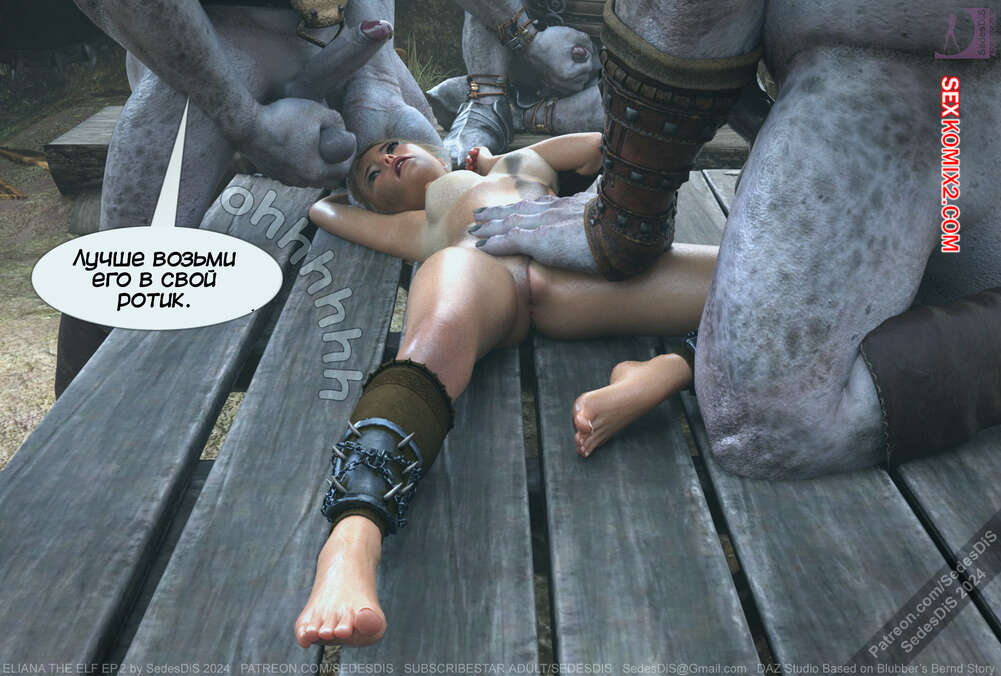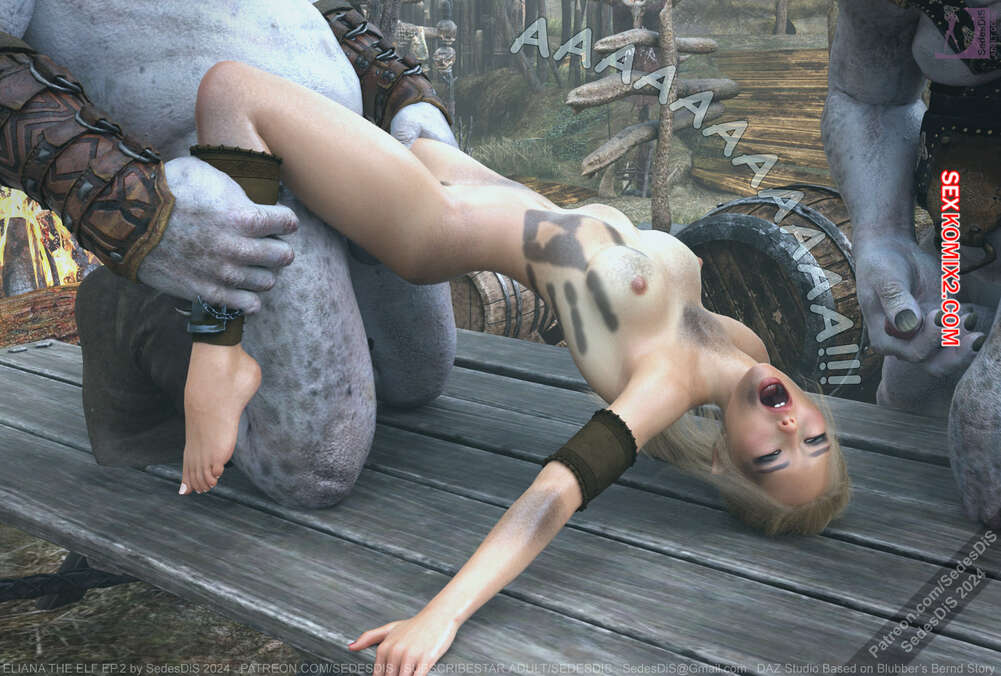 Порно комикс Элиана Эльфийка. Часть 2. Eliana The Elf. SedesDiS Элиана отрезала голову орку предателю и отправилась с ней в племя орков. Девушка требовала открыть ей ворота, а горая блондиночка стала умолять своего любимого орка впустить ее.