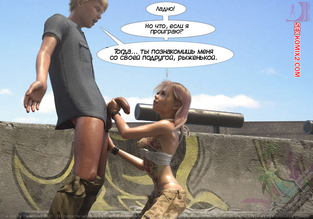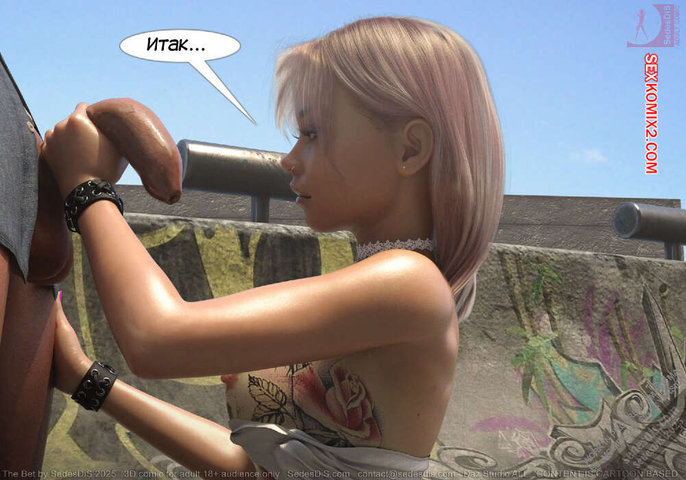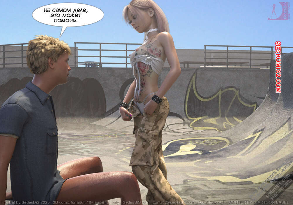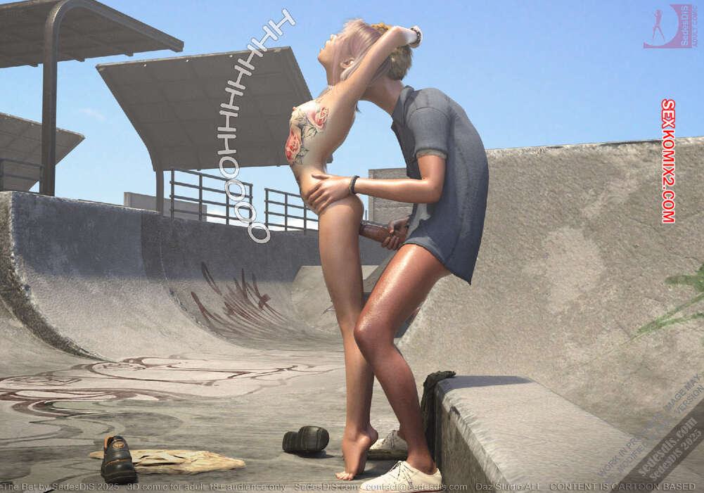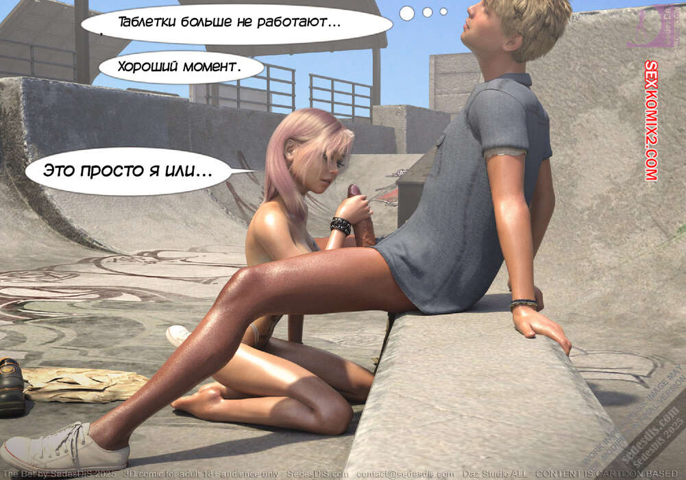 Порно комикс Ставка. The Bet. SedesDiS Горячая блондинка пришла на спортивную площадку, чтобы покататься на скейте. Там она застала своего дружка Питер без настроения и решила выяснить что у него случилось.