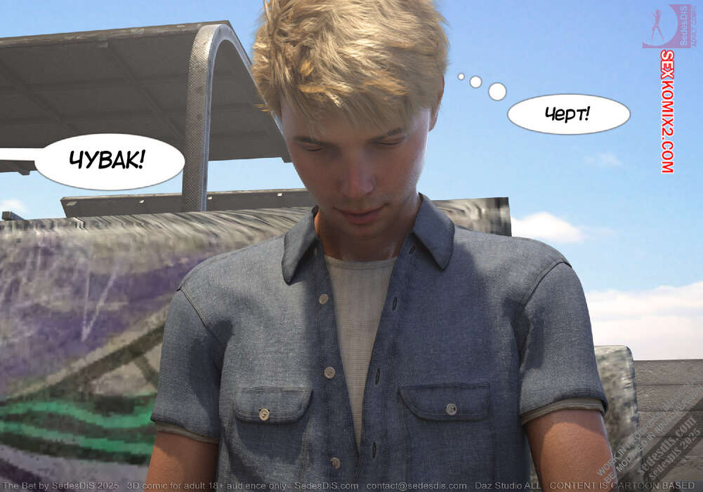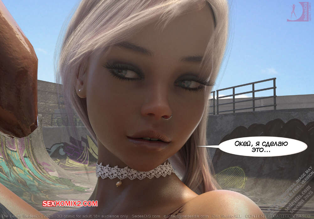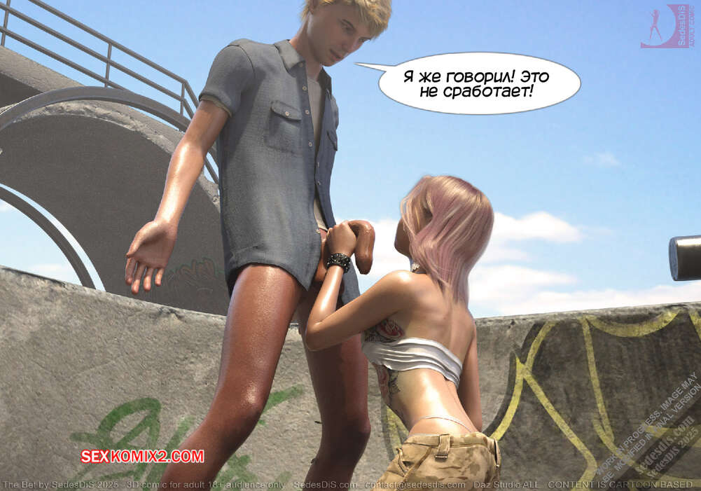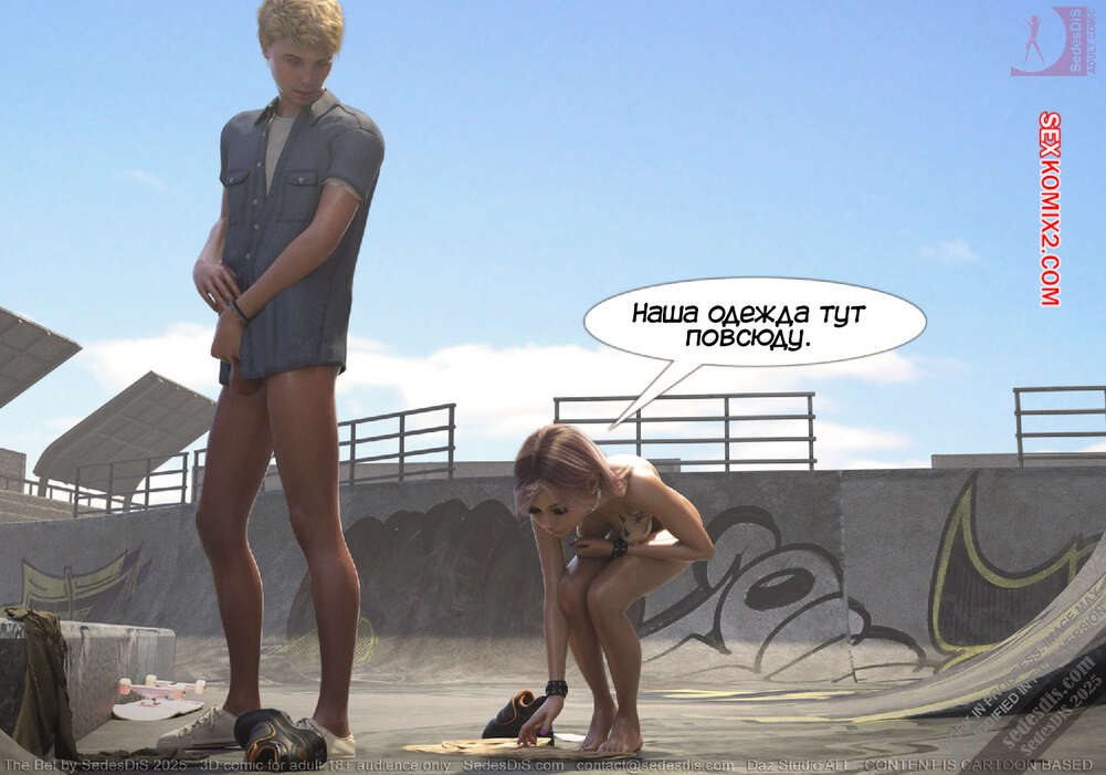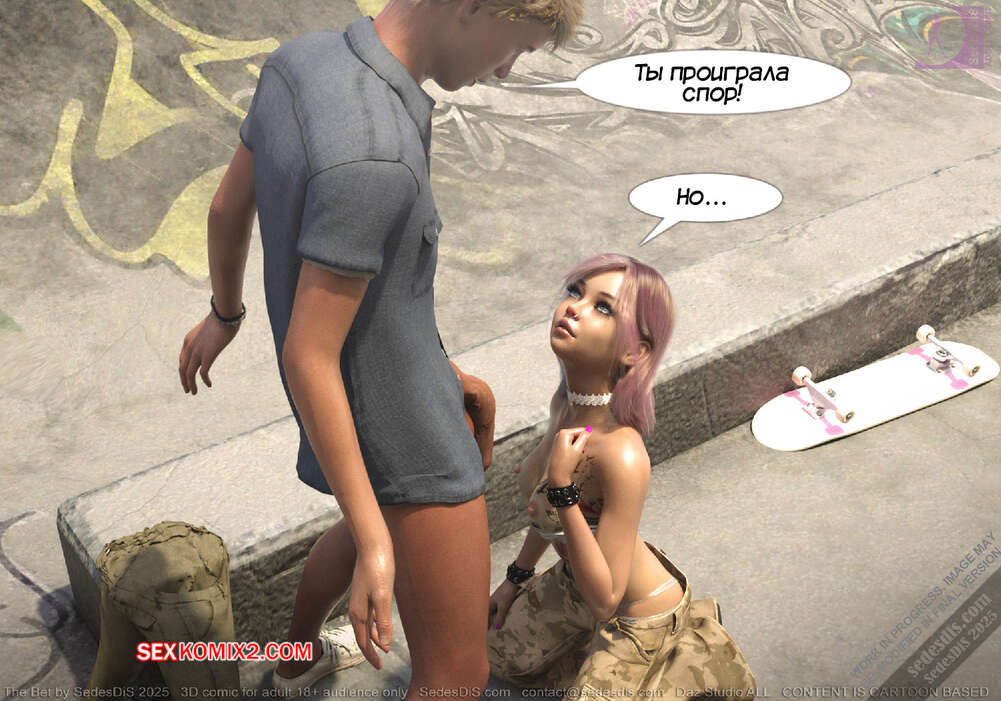 Порно комикс Ставка. The Bet. SedesDiS Горячая блондинка пришла на спортивную площадку, чтобы покататься на скейте. Там она застала своего дружка Питер без настроения и решила выяснить что у него случилось.