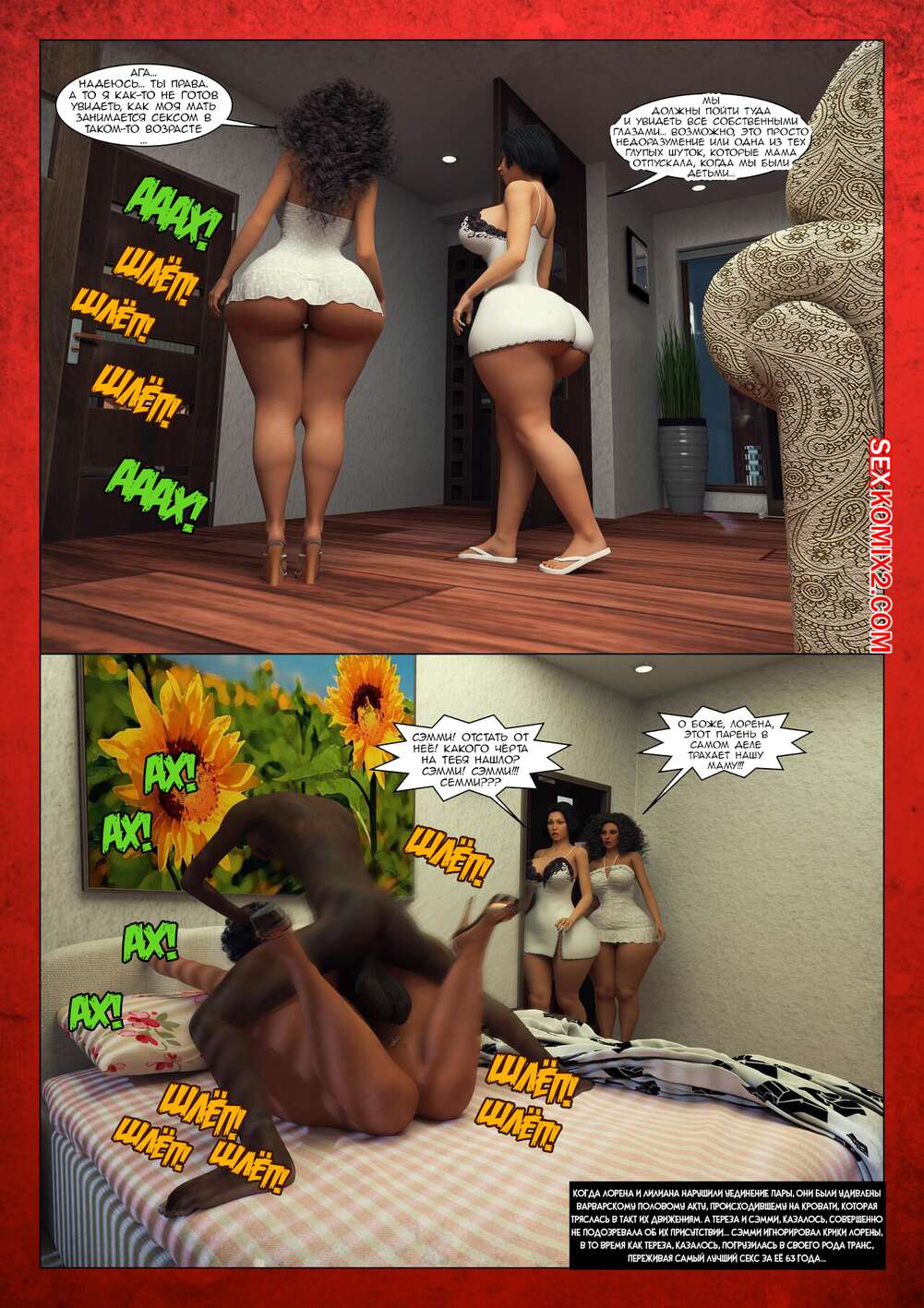 Порно комикс Чёрный переворот. Часть 6. Black Takeover Горячие милфы не могут контролировать свою страсть к черным членам. Красотки раздеваются и сосут большие хуи своих темнокожих дружков, после чего дают им себя выебать во все дырочки.