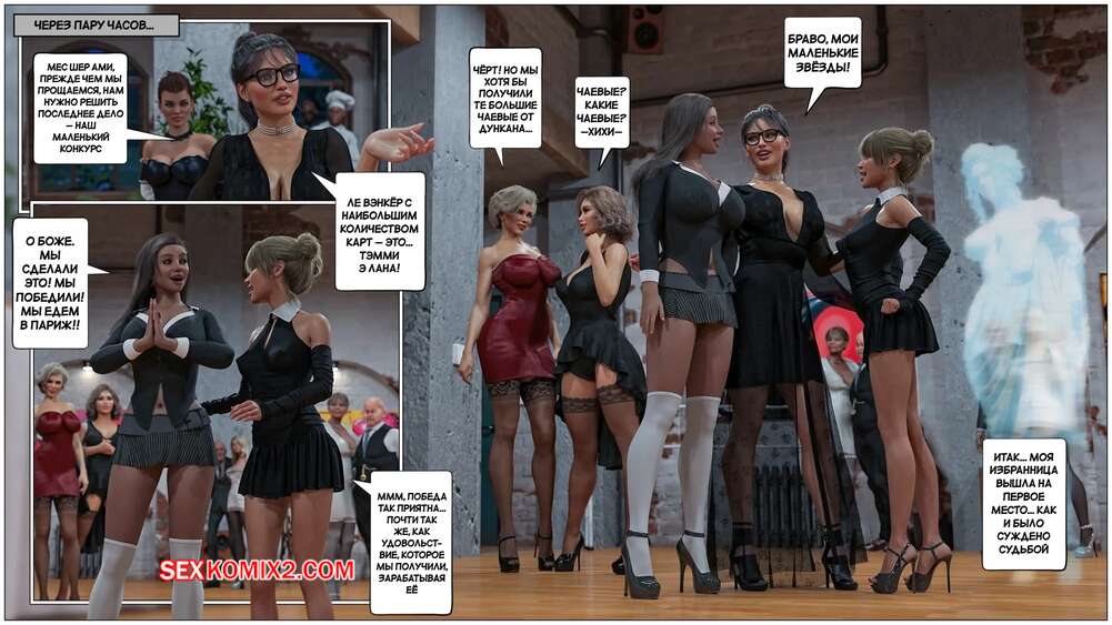 Порно комикс Кольцо Римской Императрицы. Часть 5. The Ring of the Roman Empres. Tab109 Юные красотки отправились на мероприятие, организованное мадам Маделон. Девушки положили глаз на темнокожих парней, желая поскорее насладиться их черными членами.