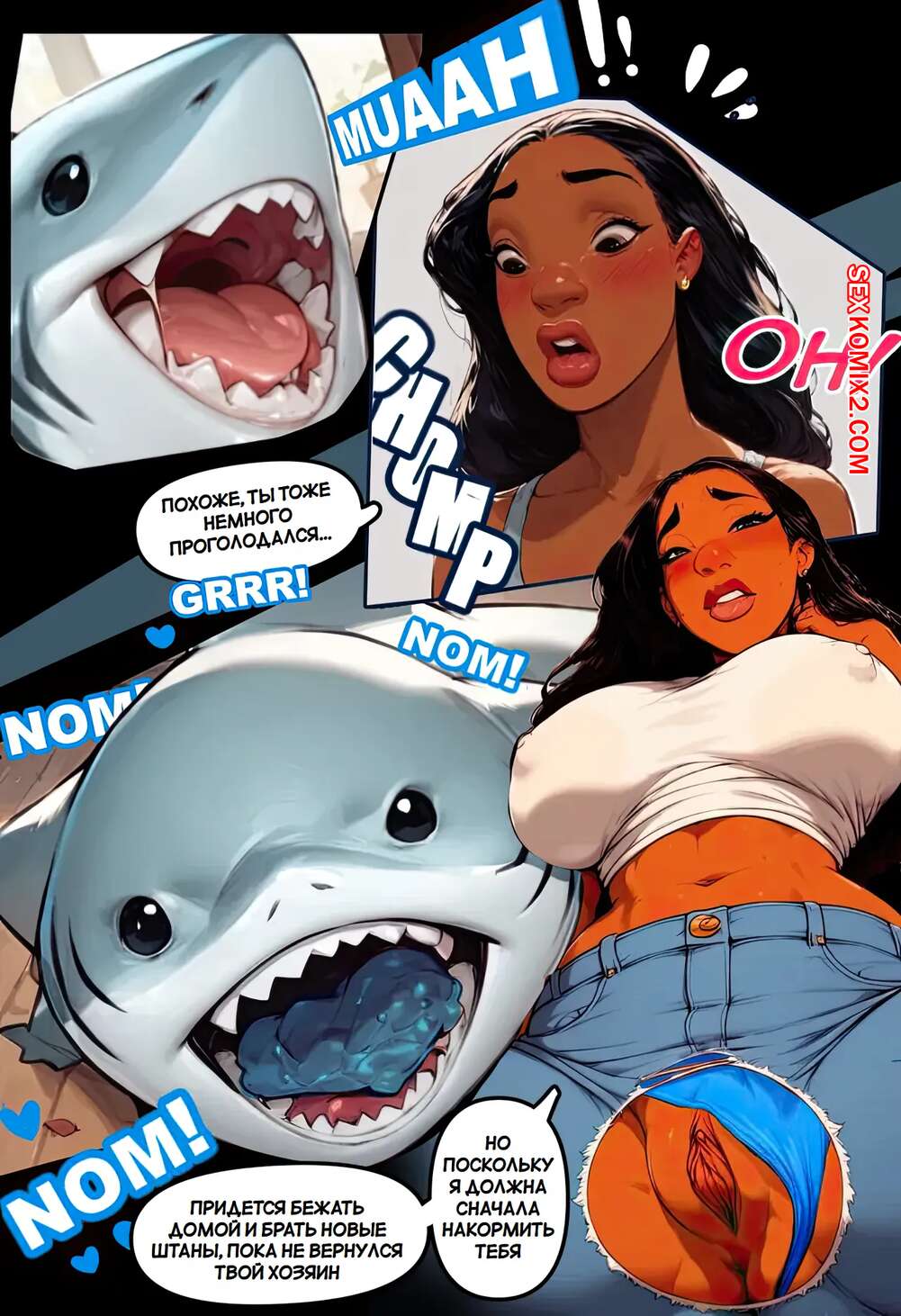 Порно комикс Лило и Стич. Сухопутная акула Джефф. Jeff the land shark Горячие красотки не могут устоять перед милой акулой, которая живет на суше. Красотки дают ему пососать свои сиськи, после чего раздвигают ножки, чтобы он их выебал.