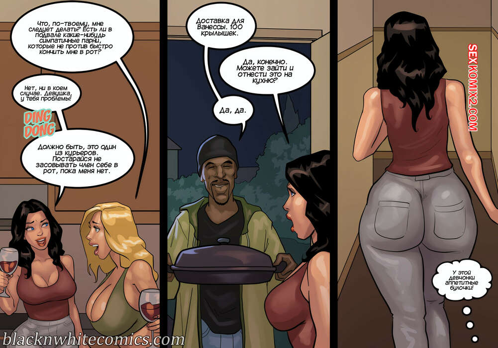 Порно комикс Игра в покер. Часть 4. The Poker Game. BlackNWhiteComics Темнокожий парень почтальон пришел домой к горячей милфе с особой посылкой. Красотка потащила парня в спальню и стала играться с его членом, пока ее муж наблюдал за ними.