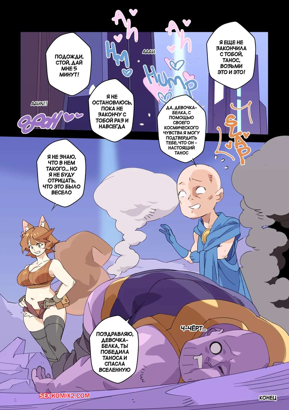 Порно комикс Marvel Rivals. Ешь орехи и бей по заднице. Eat Nuts and Kick Butts. Nisego. Горячая брюнетка девушка Белка встретилась с Таносом и соблазнила героя своим шикарным телом. Красотка уложила фиолоетового титана на землю и оседлала его член, чтобы он как следует выебал ее пизденку.