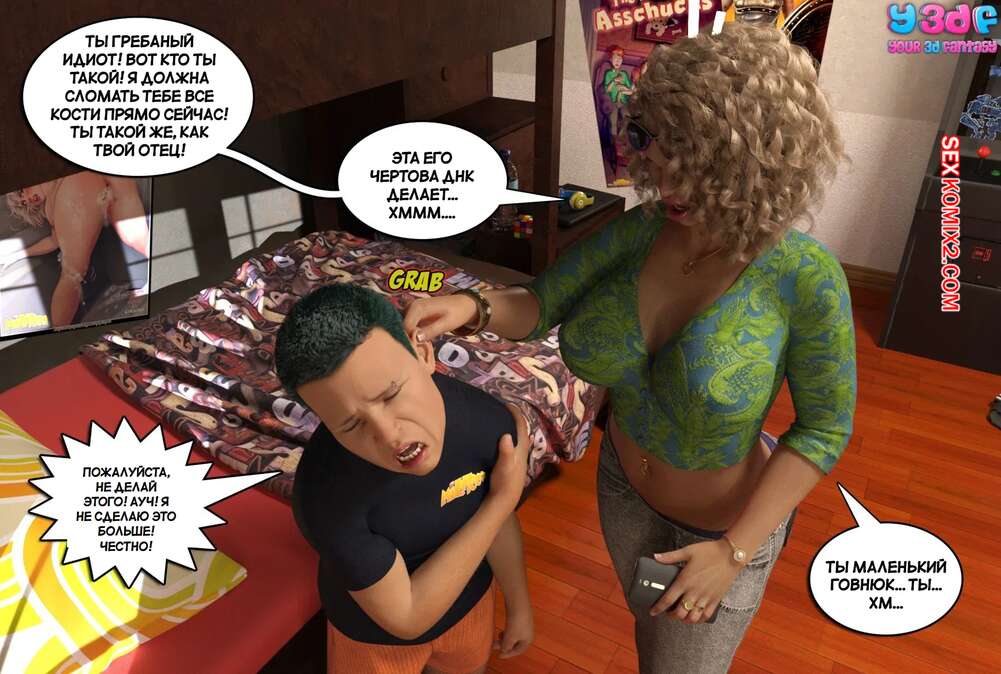 Порно комикс Докажи свою правоту. Часть 1. Prove Thy Self. Y3DF. Горячая милфа накурилась травки и уснула в своей спальне в одном белье. Ее сын застал мамочку в таком виде и решил воспользоваться моментом, чтобы сделать откровенные фотографии.