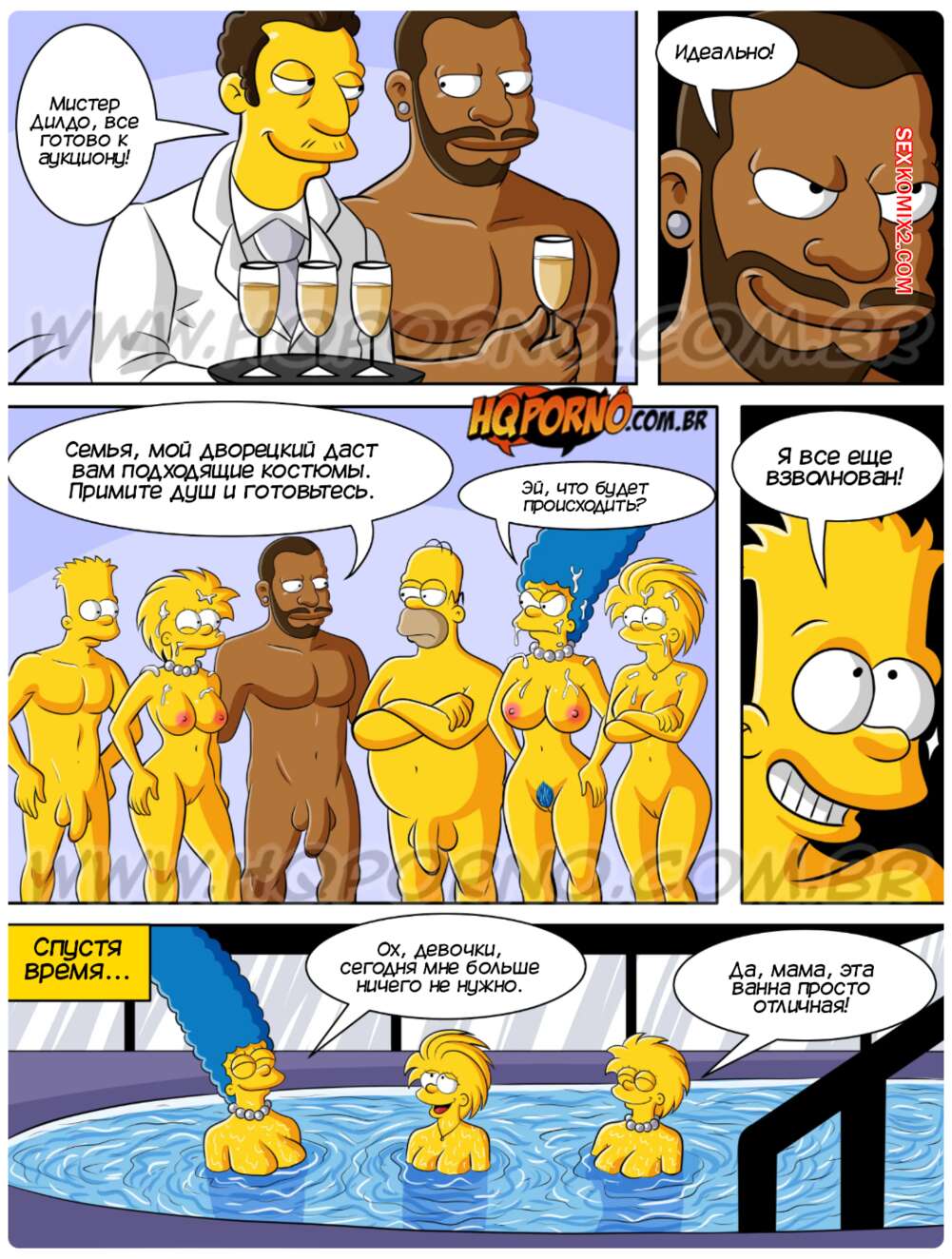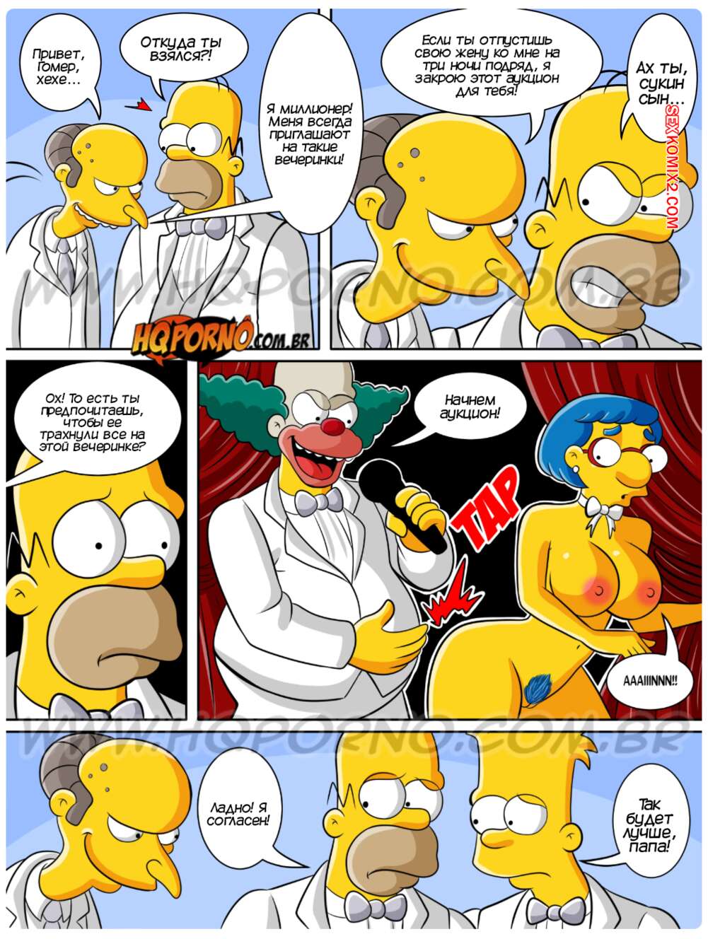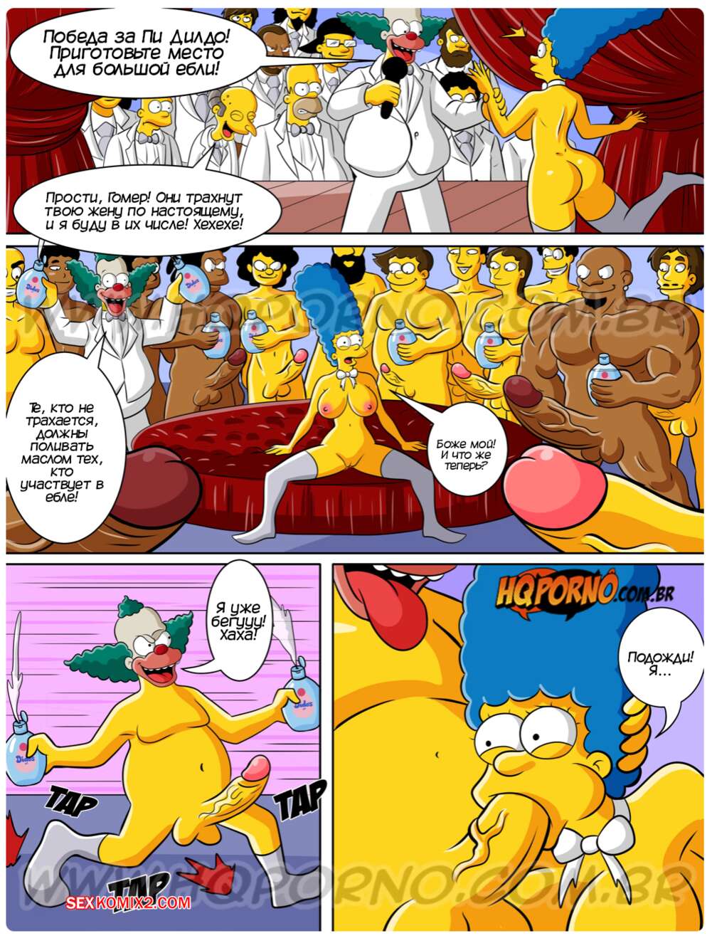 Порно комикс Симпсексы. Часть 22. Os Simpsexys. HQPorno Гомер с семьей собирались покинуть вечеринку Пи Дилдо, но он убедил их остаться. Начался аукцион, в котором разыгрывалась Мардж. Ее выебали во все дырочки все парни с вечеринки, после чего хозяин тусовки занялся ей.