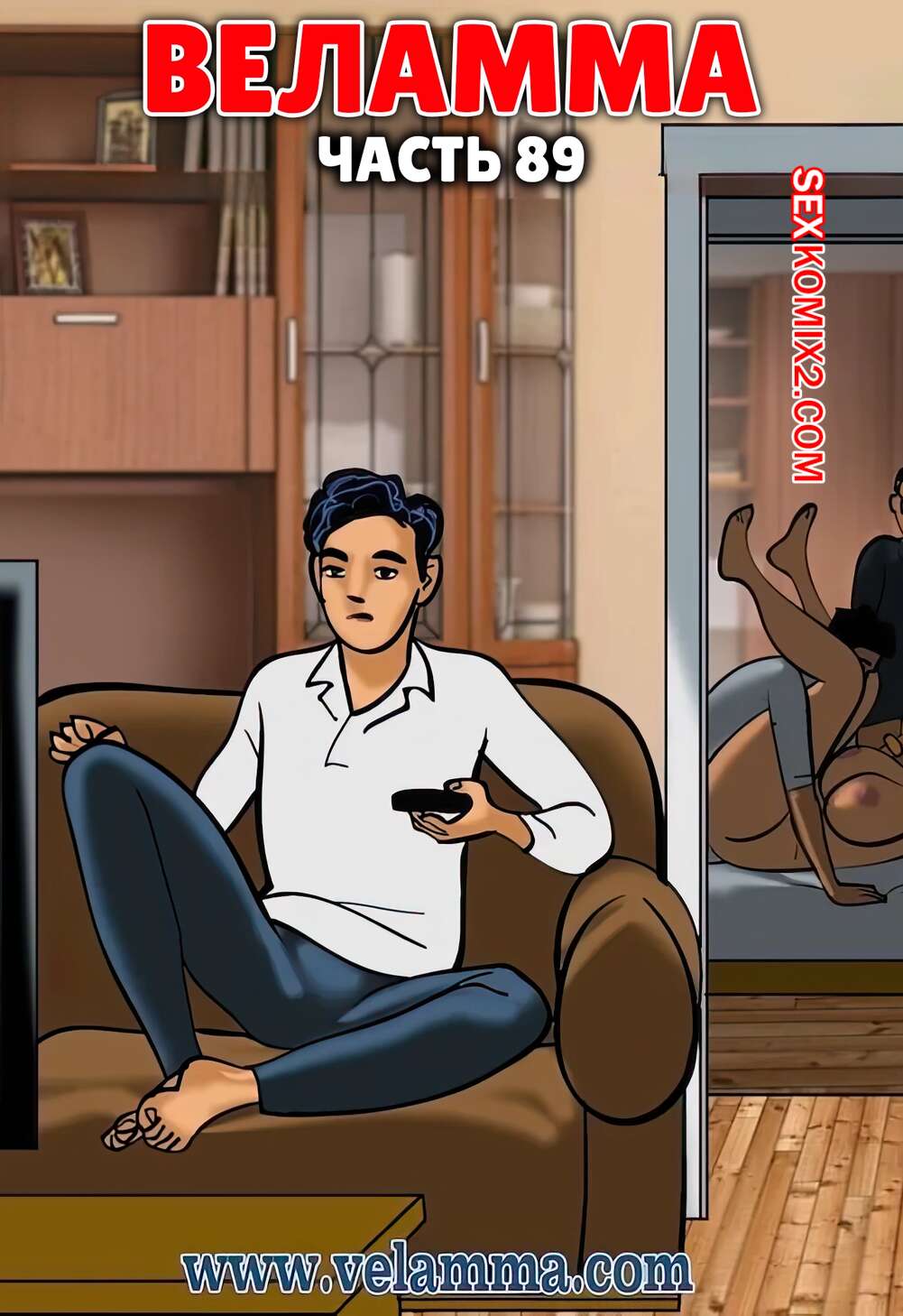 Порно комикс Веламма. Часть 89. Velamma. Velamma Молодой парень стал ласкать Веламму, соблазняя красотку. Она не смогла устоять перед соблазном и начала сосать член парня, после чего дала ему выебать свою пизденку.