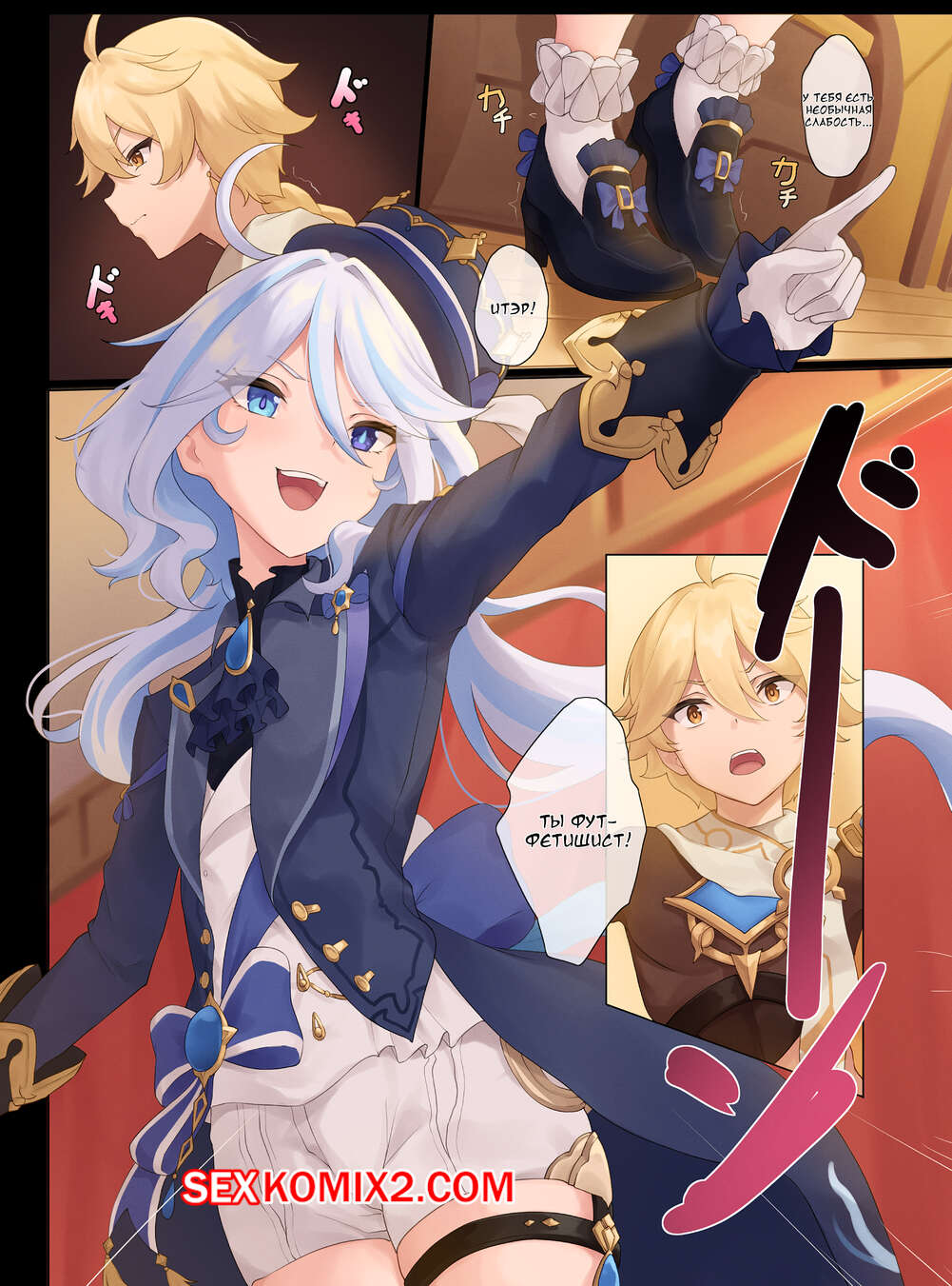Порно комикс Genshin Impact. Furinas Challenge. Furina no Shoubu. Gueya Фурина была очень возбуждена и решила повеселиться со своим дружком. Она соблазнила парня, после чего стала дрочить его член ножками, помогая ему хорошенько кончить.