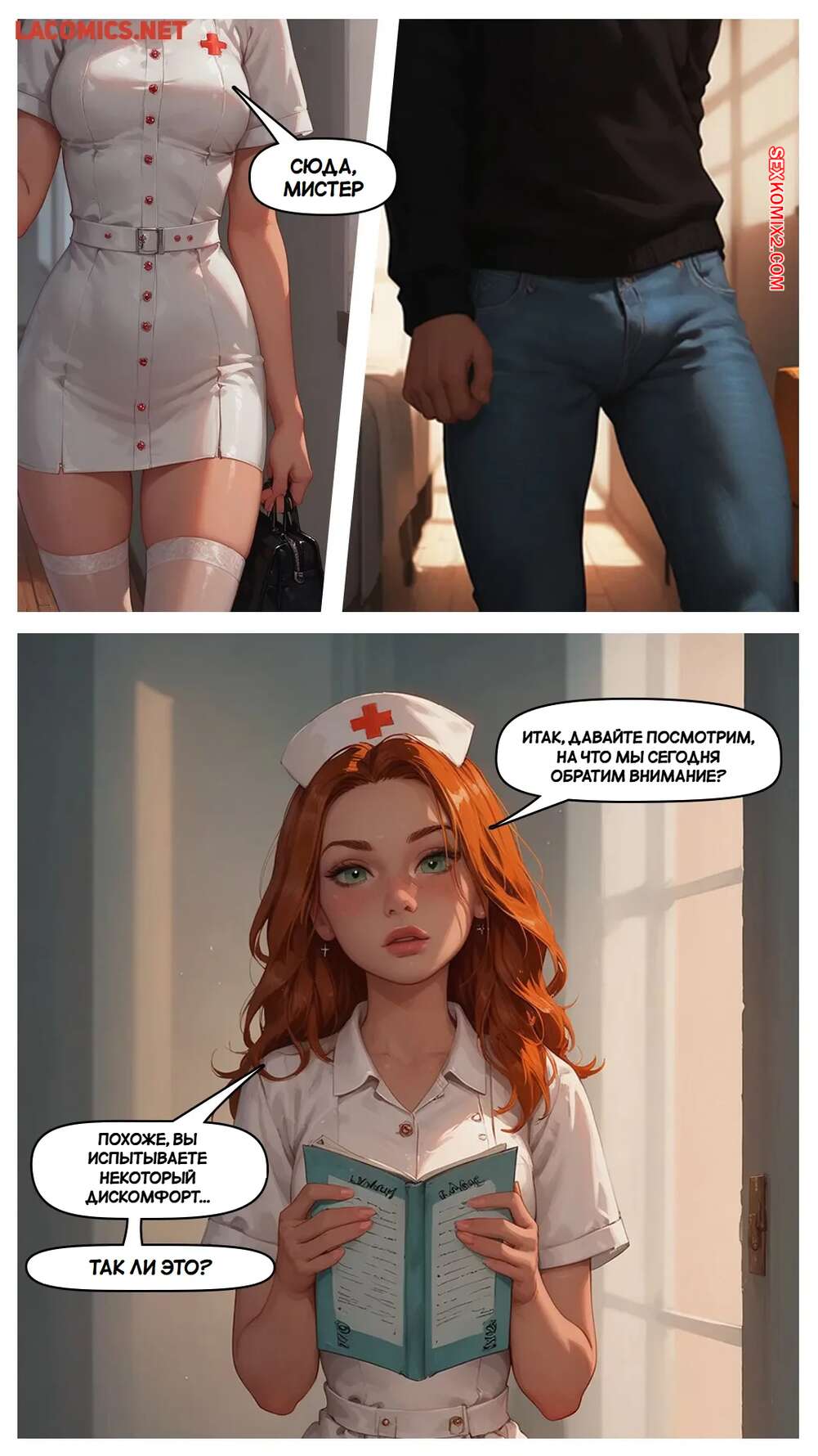 Порно комикс Встреча с медсестрой Евой. An Appointment with Nurse Eve. LowFireStudios Рыжая медсестра пришла проведать своего пациента и решила с ним повеселиться. Красотка разделась и соблазнила парня, после чего раздвинула ножки и дала ему себя выебать.
