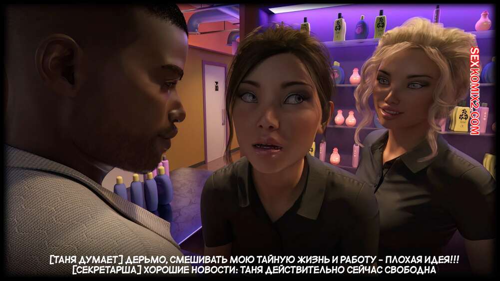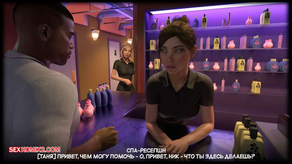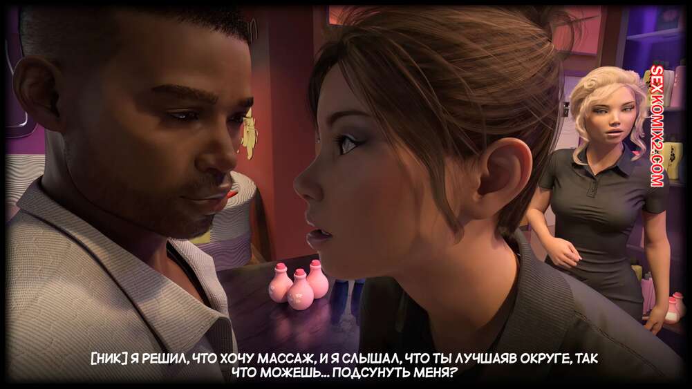 Порно комикс Черная метка. Новое приключение Тани. Часть 3. Tanyas New Adventure. Sexy3DComics Горячая брюнетка делала массаж темнокожему парню и была поражена размером его члена. Красотка разделась и стала сосать хуй клиента, после чего дала ему себя выебать.