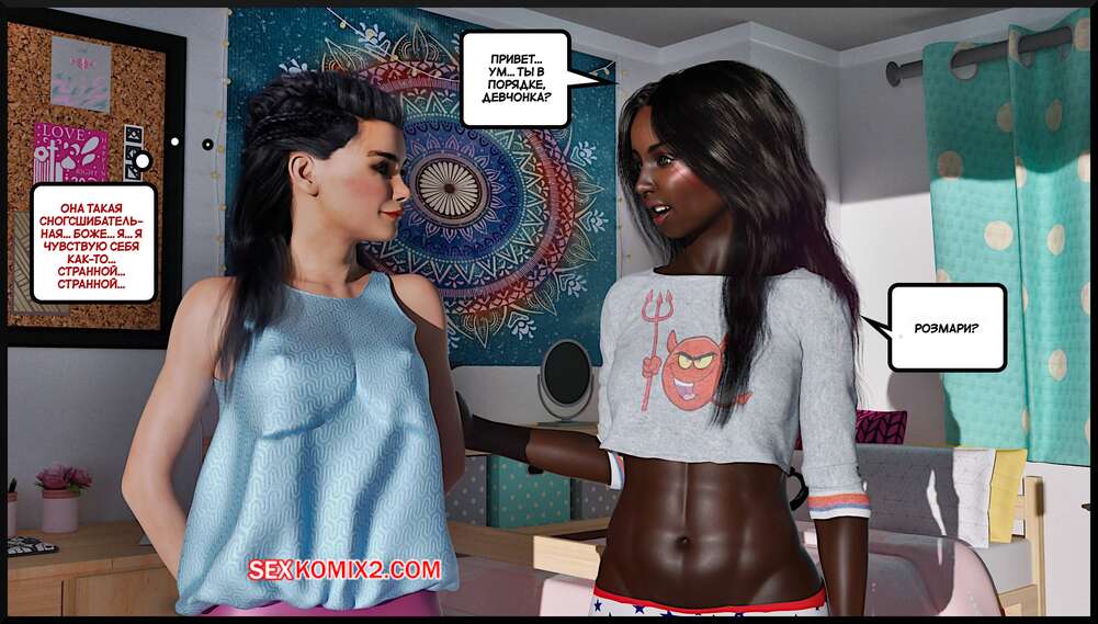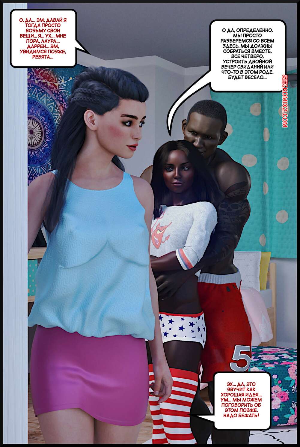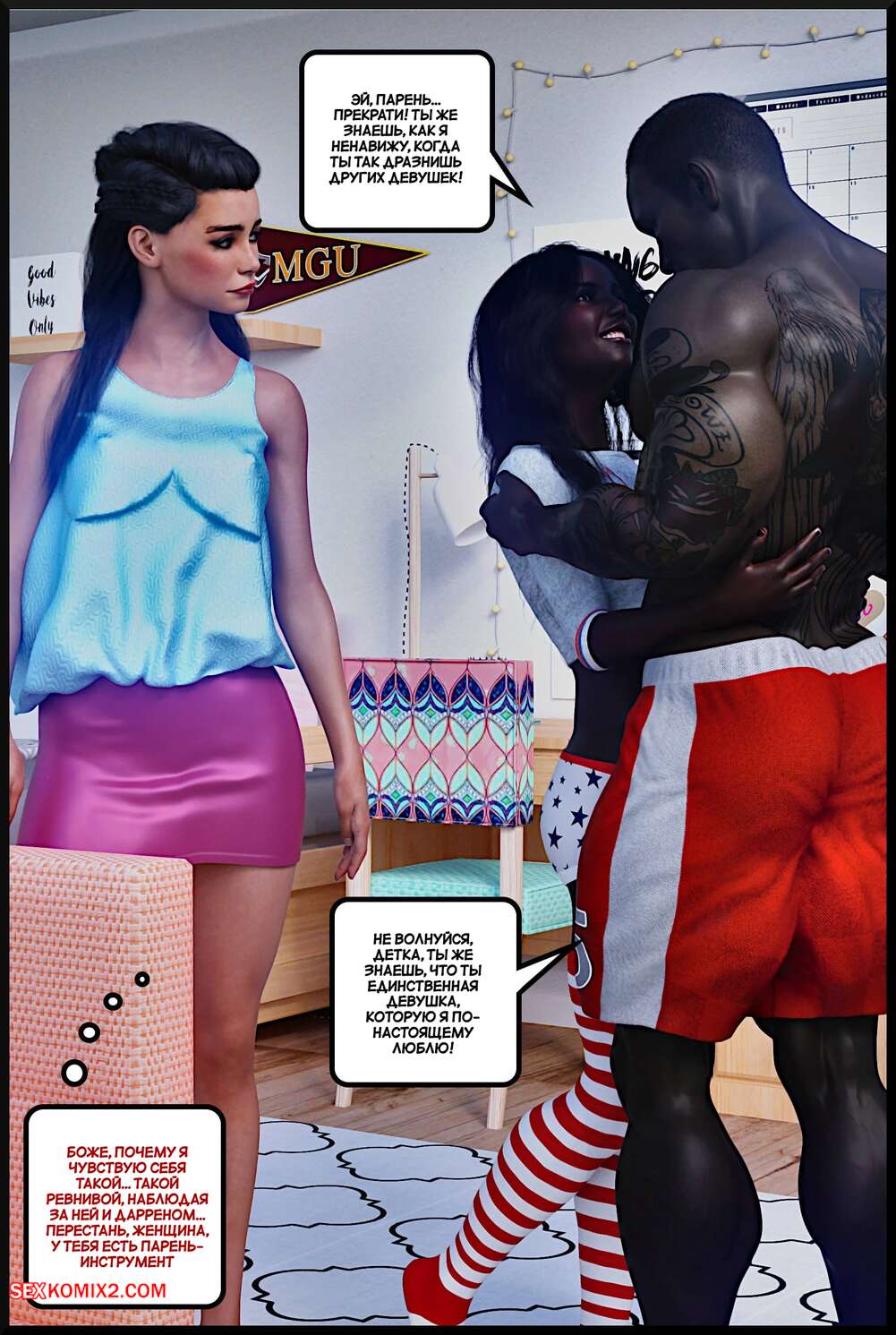 Порно комикс Соперница. The Rival. Alison Hale. Темнокожая брюнетка привела своего парня в общагу и познакомила его со своей знакомой. Красотки разделись и отсосали хуй парня, после чего он их хорошенько выебал.