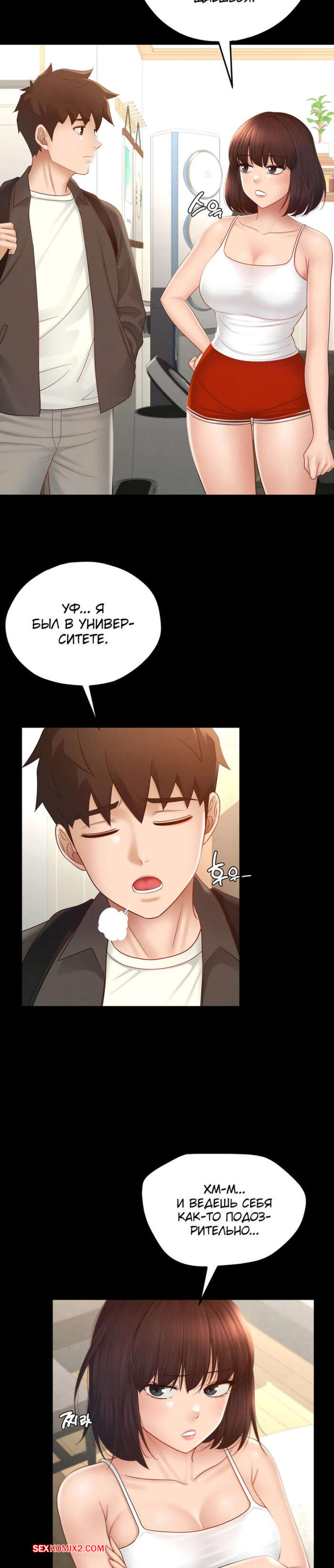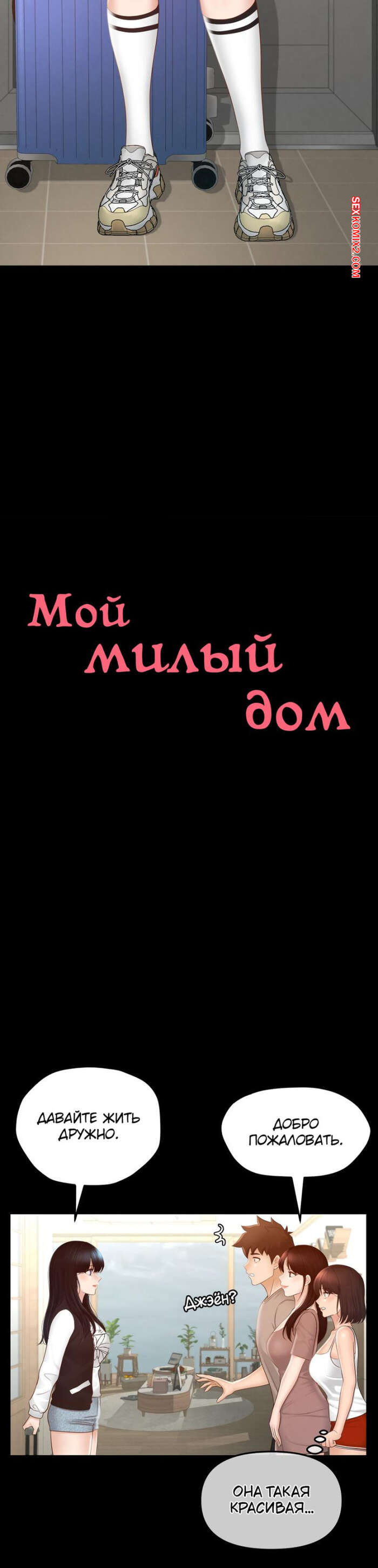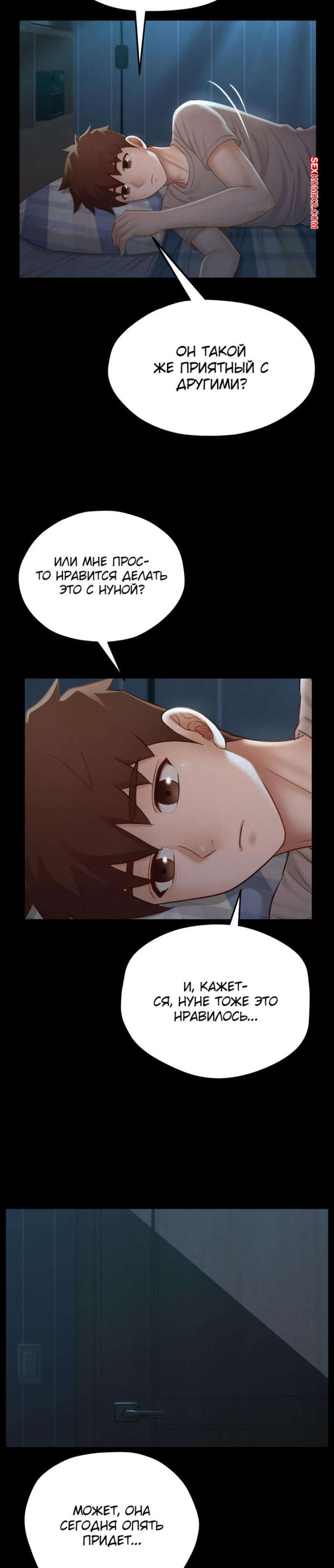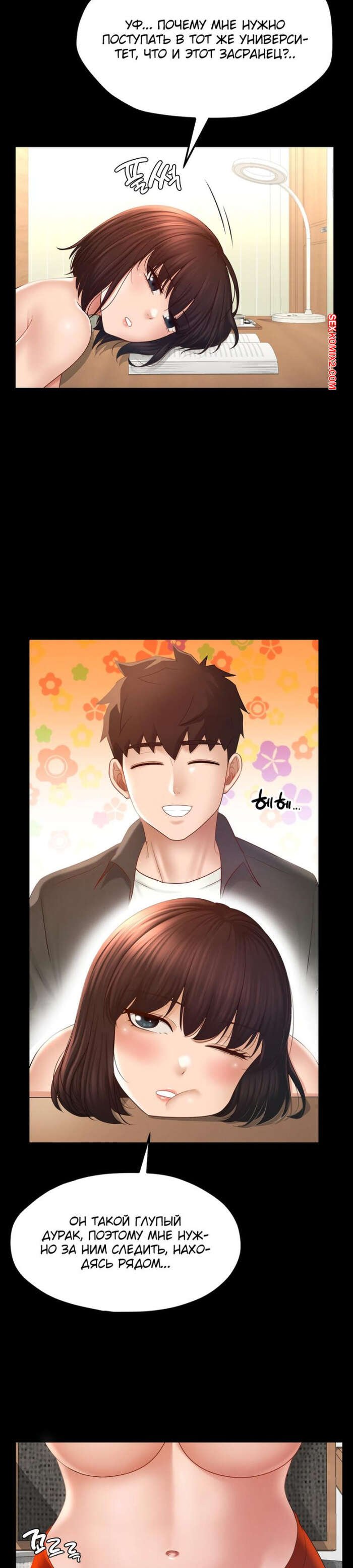 Порно комикс Пансионат Дом, милый дом. Часть 7 и 8 и 9. seuwiteumaihom Горячая брюнетка принимала душ и возбудилась, думая о своем дружке. Красотка отправилась в комнату к парню и стала дрочить его член, после чего оседлала паренька, чтобы он ее выебал.