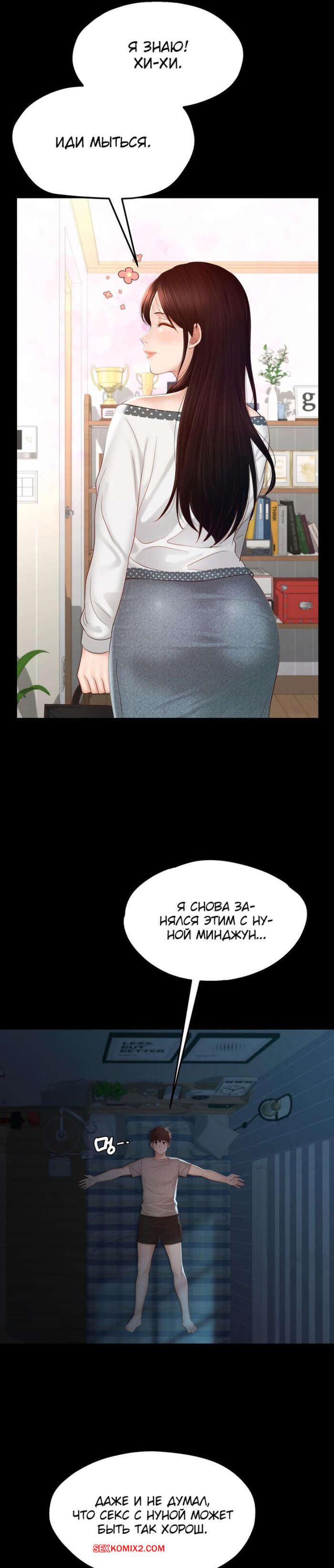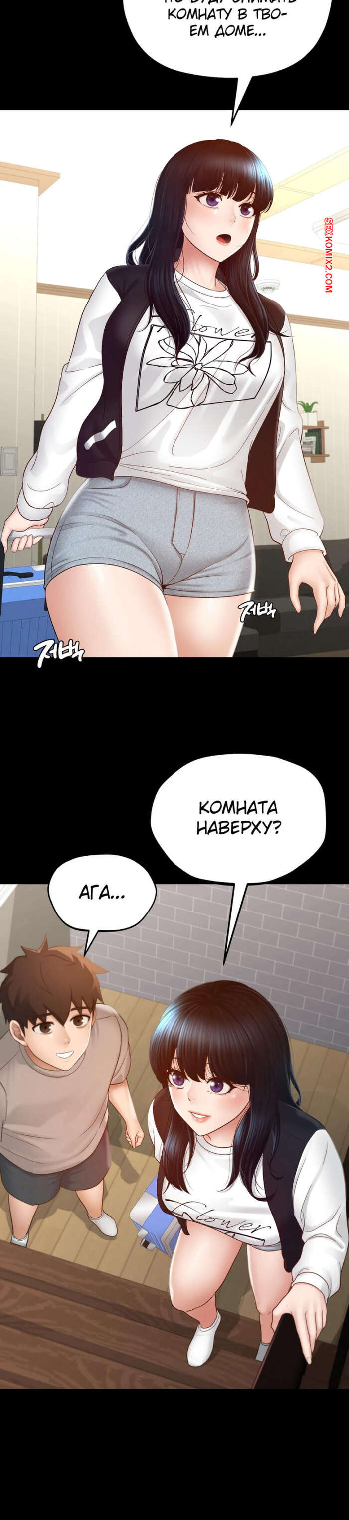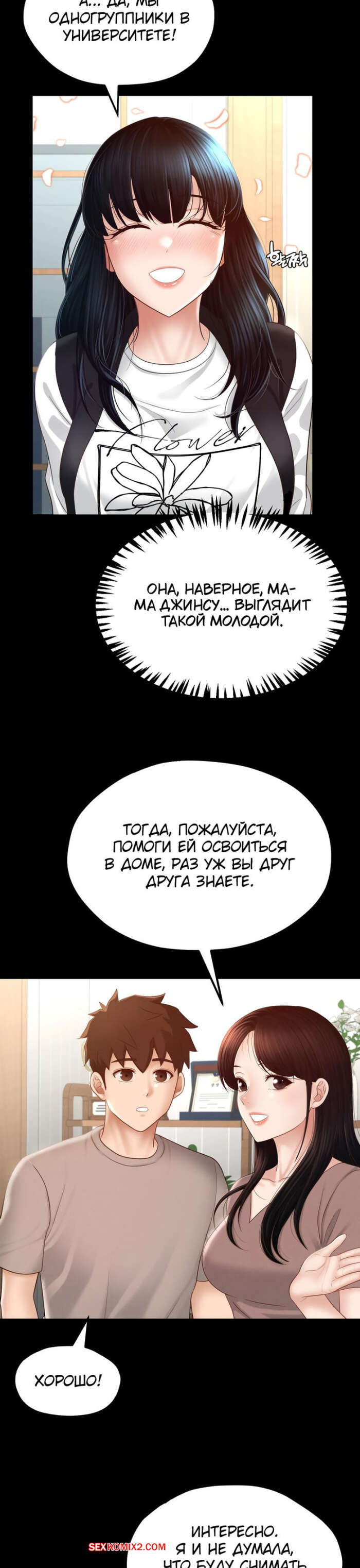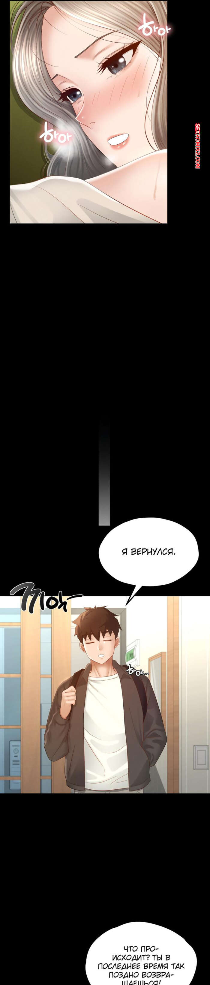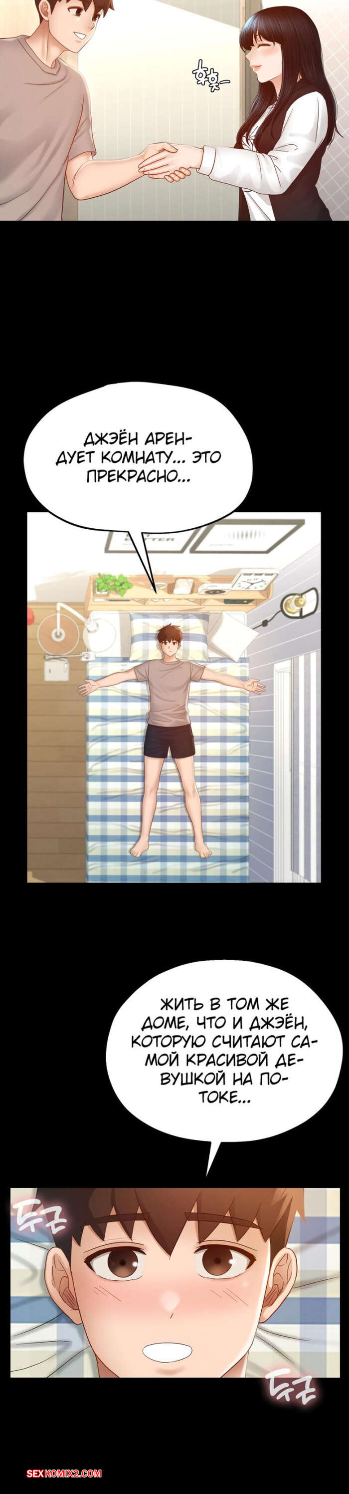 Порно комикс Пансионат Дом, милый дом. Часть 7 и 8 и 9. seuwiteumaihom Горячая брюнетка принимала душ и возбудилась, думая о своем дружке. Красотка отправилась в комнату к парню и стала дрочить его член, после чего оседлала паренька, чтобы он ее выебал.