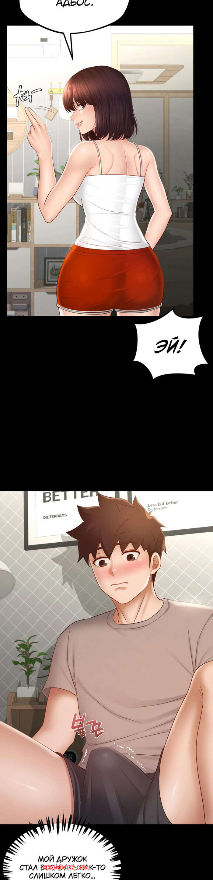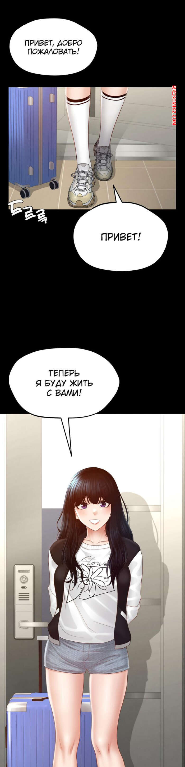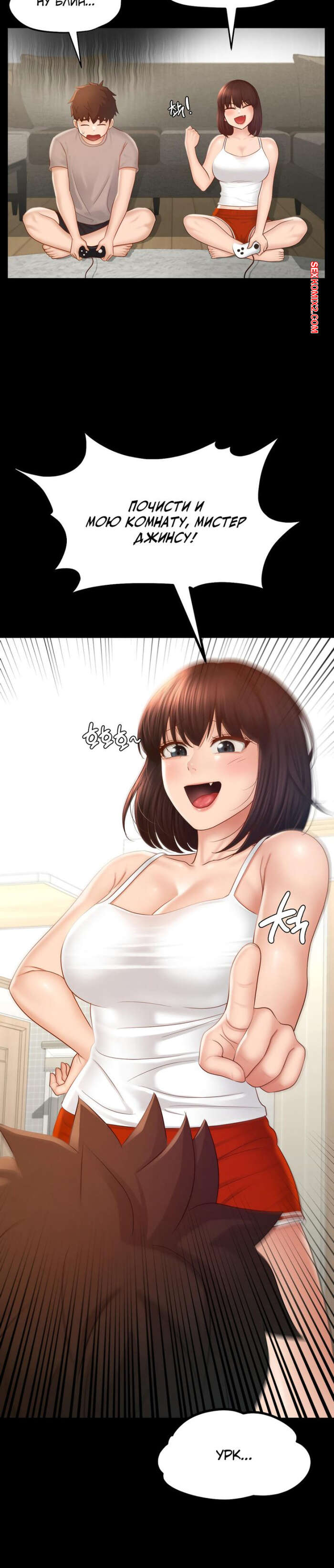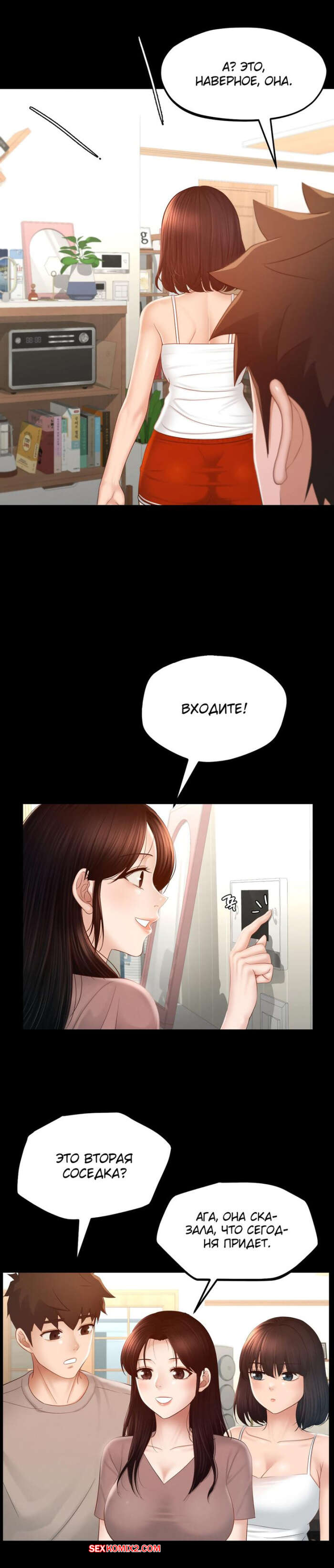 Порно комикс Пансионат Дом, милый дом. Часть 7 и 8 и 9. seuwiteumaihom Горячая брюнетка принимала душ и возбудилась, думая о своем дружке. Красотка отправилась в комнату к парню и стала дрочить его член, после чего оседлала паренька, чтобы он ее выебал.