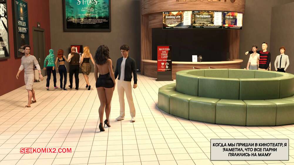 Порно комикс Живем с мамой. Часть 3. Rooming with Mom. SaturnSky69 Мамка с сыном сходили в кино, а когда вернулись домой, красотка решила повеселиться. Она встала на колени и отсосала хуй парня, после чего дала ему себя как следует выебать.