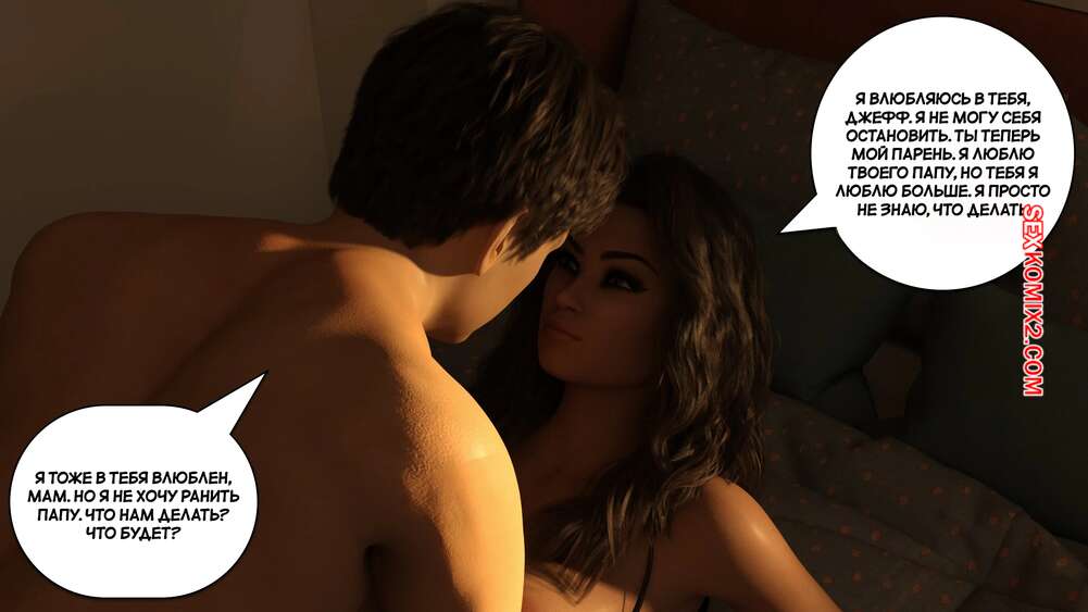 Порно комикс Живем с мамой. Часть 5. Rooming with Mom. SaturnSky69 Парнишка спал в обнимку с мамочкой и очень возбудился, чувствуя ее задницу. Красотка почувствовала стояк сына и раздвинула ножки, чтобы парнишка выебал ее пизденку.