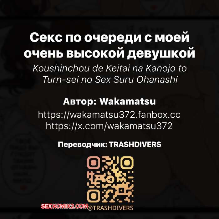 Порно комикс Секс по очереди с моей очень высокой девушкой. Wakamatsu Парень встречается с высокой девушкой, которая очень любит трахаться. Она раздевается и возбуждает парня, после чего они трахаются в разных позах, получая невероятное удовольствие.