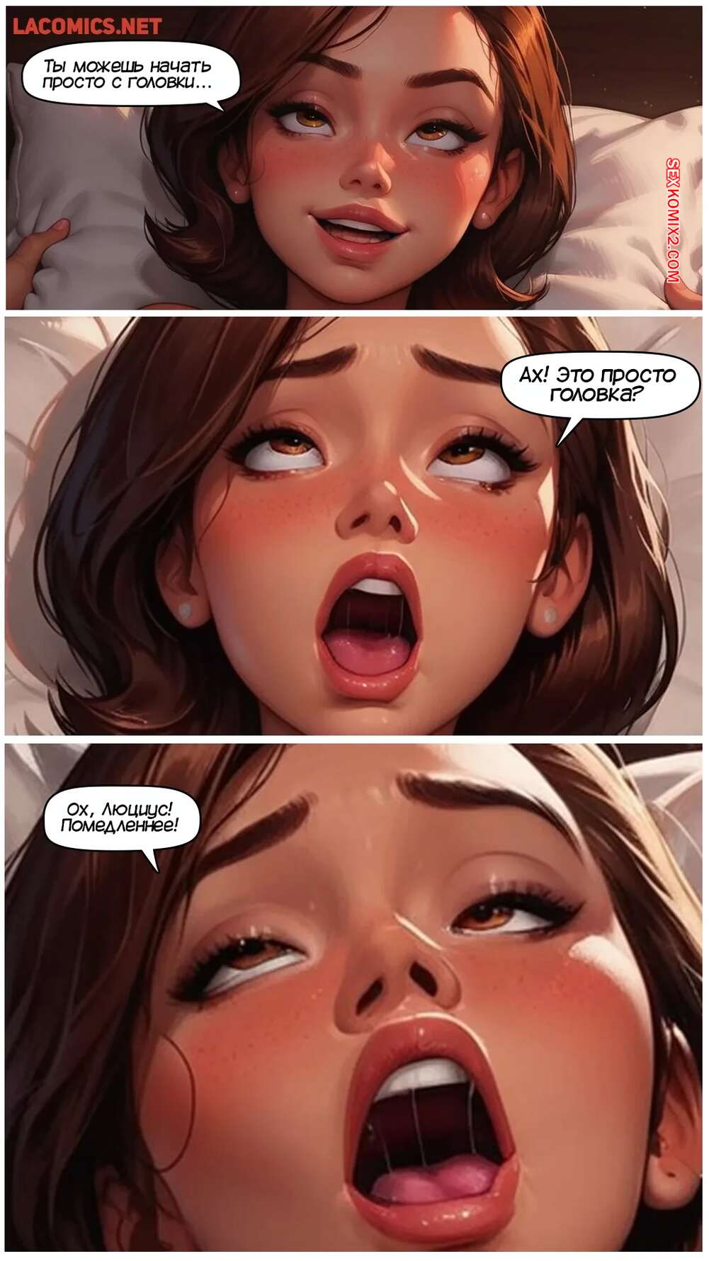 Порно комикс Суперсемейка. Хелен. Роман с Фрозоном. Часть 2. LowFireStudios Горячая красотка Эластика пригласила к себе Люциуса. Брюнеточка приняла душ и надела сексуальный халатик, после чего стала ожидать приезд друга мужа, чтобы насладиться его черным членом.