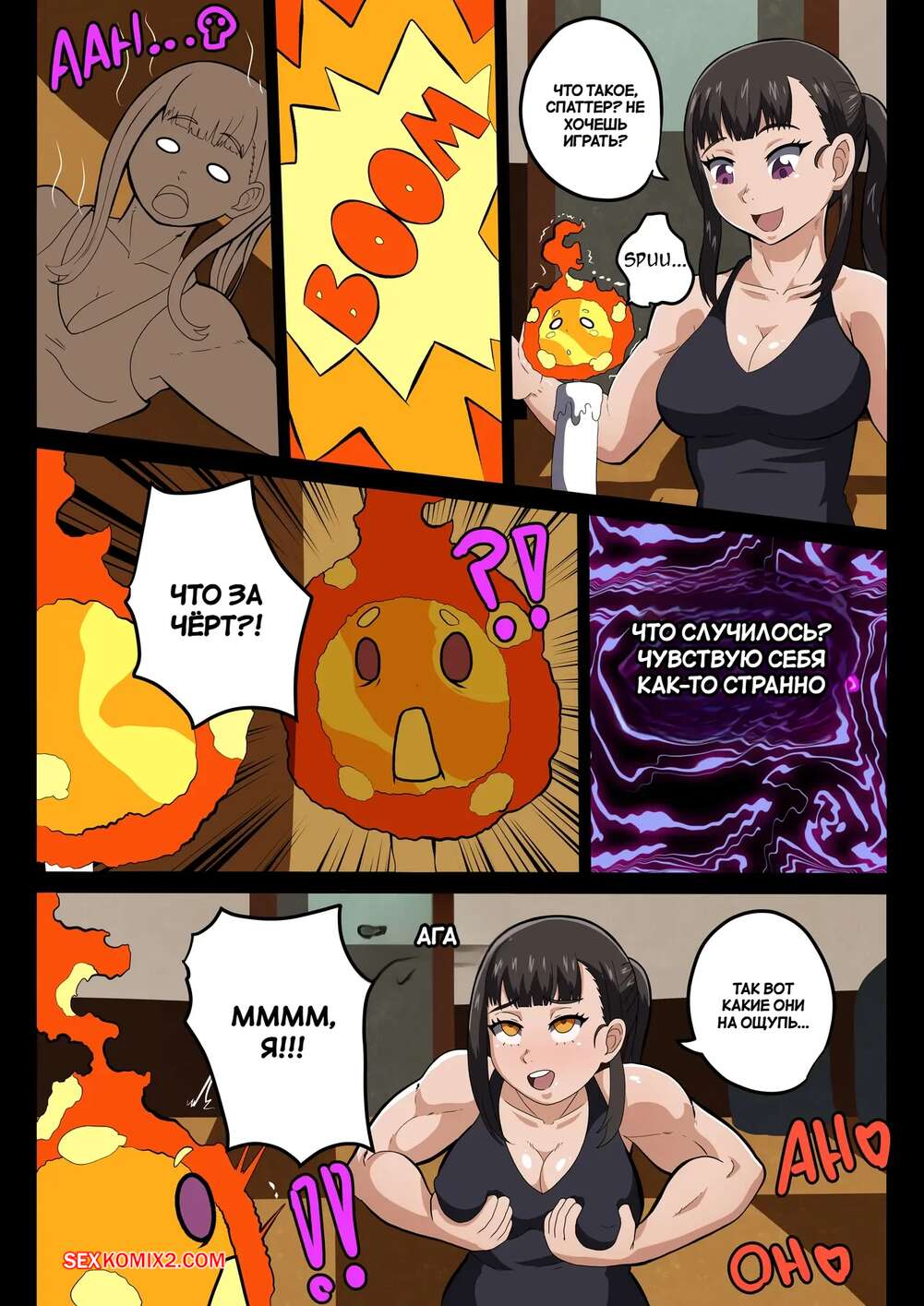 Порно комикс Fire Force. Маки Сан в огне. Maki san is on Fire. TSFSingularity. В тело горячей брюнетки вселился ее огненный дружок и девушка решила поскорее изучить свое тело. Красотка скинула одежду и стала ласкать свою пизденку, после чего к ней присоединилась подруга, чтобы устроить лесбийскую еблю.