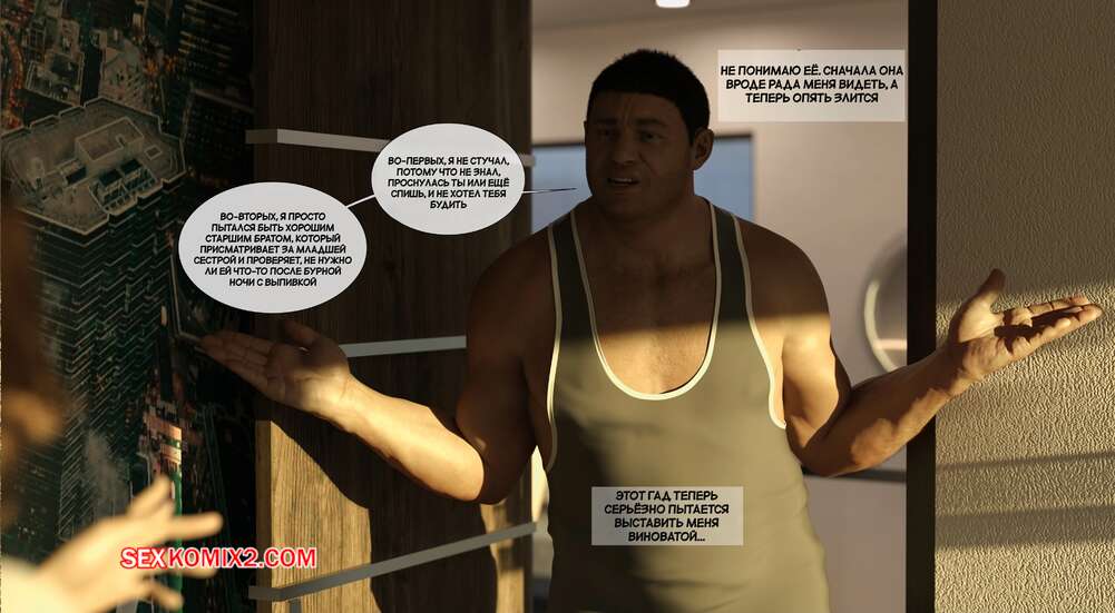 Порно комикс Запретные плоды. Часть 3. Forbidden Fruits. Tal3s of Debauchery Горячая брюнетка пробралась ночью в комнату к брату и была поражена его огромным членом. Девушка начинает ходить перед братом почти голой, желая его возбудить и подразнить.