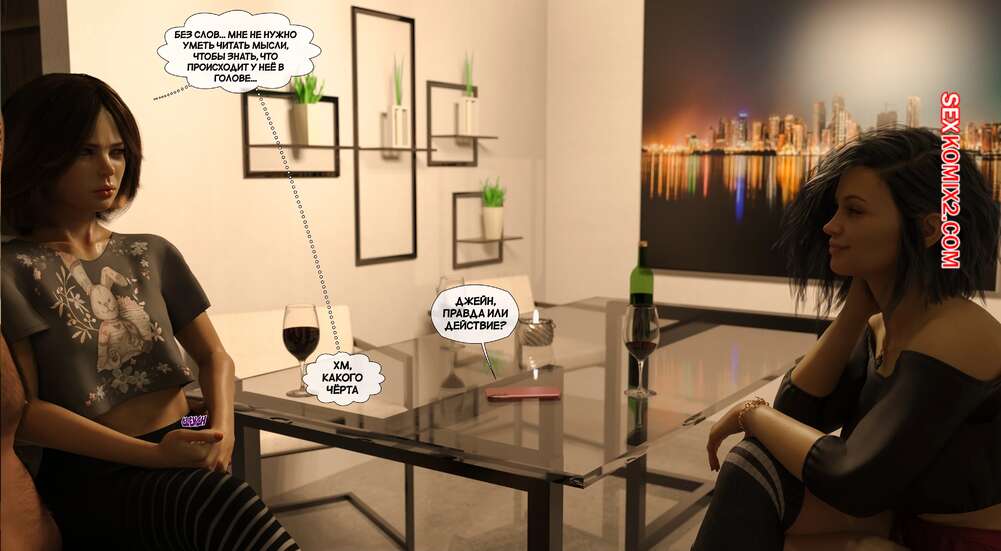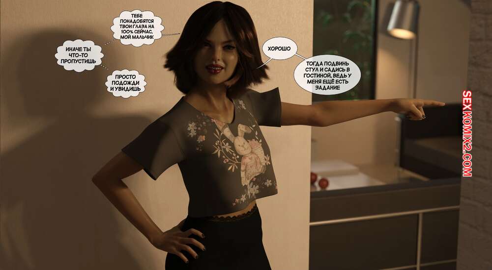 Порно комикс Запретные плоды. Часть 4. Forbidden Fruits. Tal3s of Debauchery Горячая брюнетка соблазняла своего брата и он возбудился так, что больше не мог сдерживаться. Он усадил девушку на стол и стал лизать ее пизденку, но им помешала самая младшая сестренка в сексуальном белье.