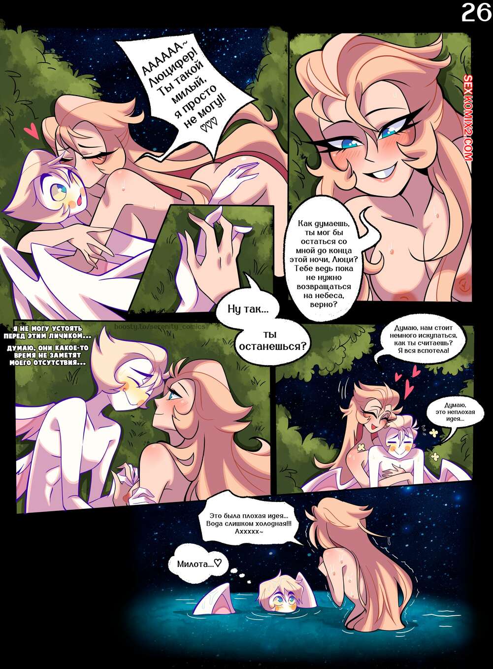 Порно комикс Hotel Hazbin. Первая Ночь. First Night После прогулки в парке Лилит впервые попросила Люцифера провести ночь с ней. Они стали страстно целоваться и раздевать друг друга, после чего у них случится первый секс, от которого парень с девушкой испытали невероятное удовольствие.