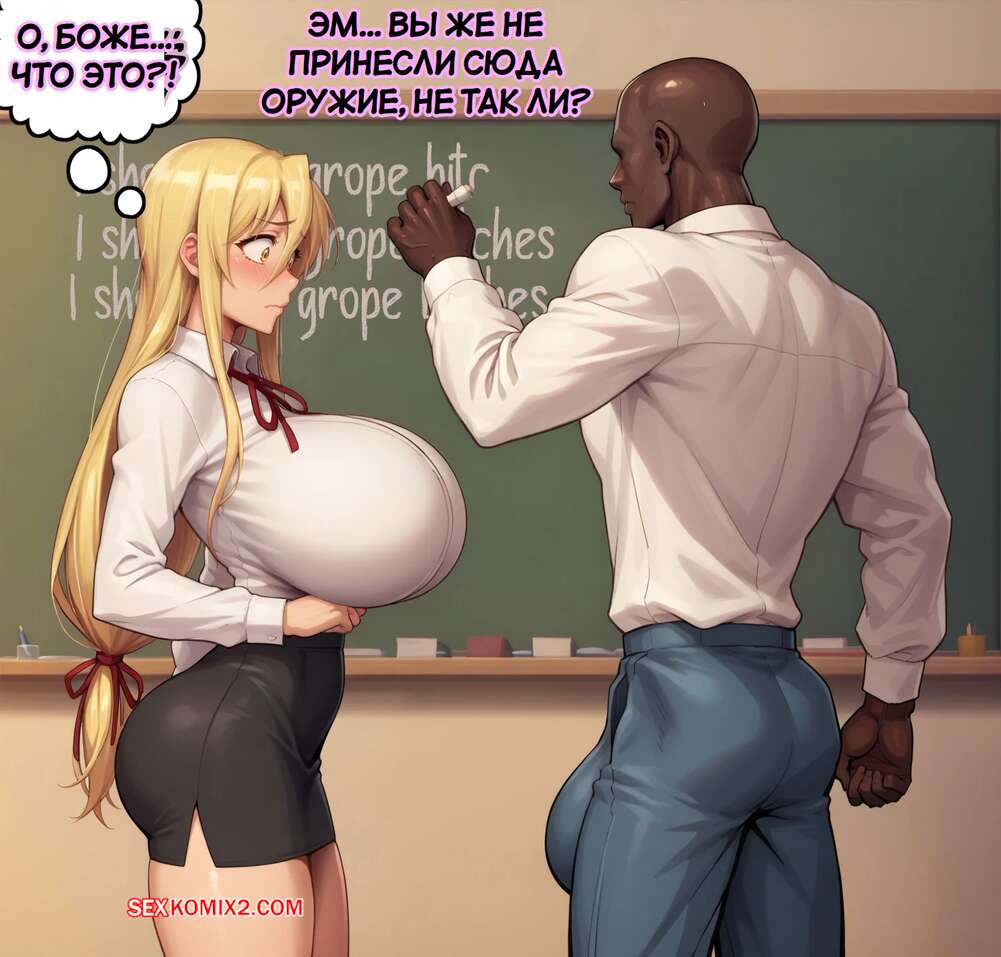 Порно комикс Сидзука Марикава из школы мертвых застряла с парой правонарушителей Сексуальная блондинка осталась в учебном классе с темнокожими парнями. Они достали свои огромные члены и возбудили красотку, после чего выебали ее во все дырочки.