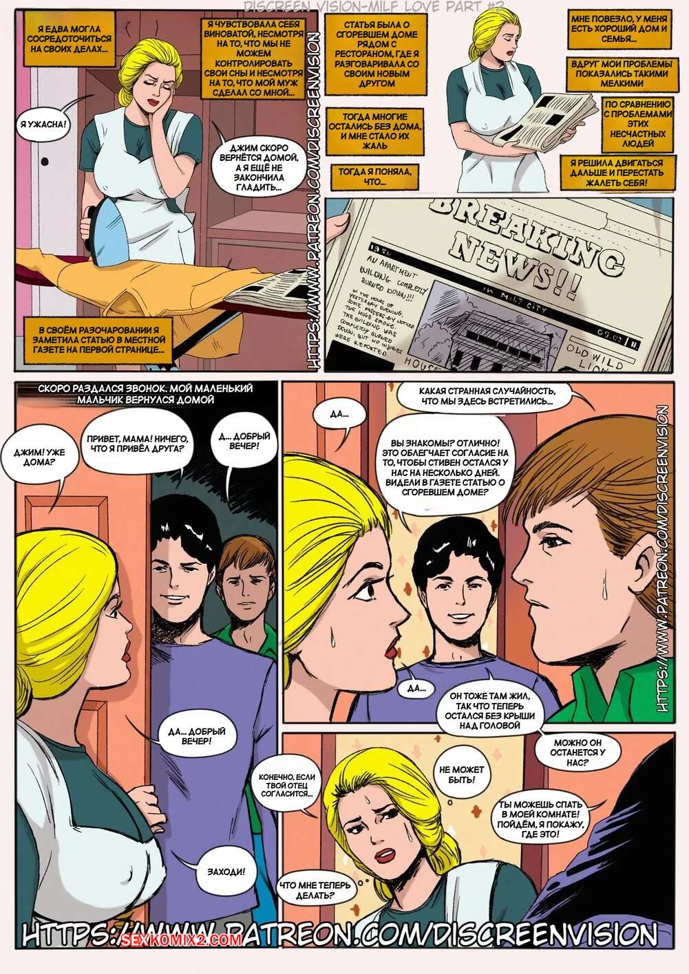 Порно комикс Любовь Милфы. Часть 2. MILF Love. Inusen, Discreen Vision Горячая милфа занималась домашними делами, когда домой вернулся ее сын и привел друга. Красотка сразу положила глаз на молодого парня и вскоре стала его соблазнять, выставляя напоказ свое шикарное тело.
