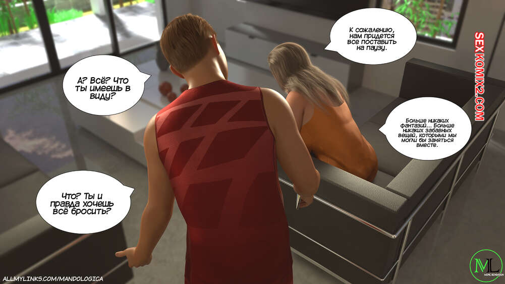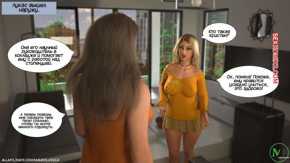 Порно комикс Разрушение границ. Часть 11. Breaking Boundaries. MandoLogica Лукас беспокоится о том, что приезд его кузины может помешать их семейным отношениям. Он придумаывает план, как убедить отца продолжить эксперимент. Когда Уильям вернулся домой с работы, его горячая жена Адрианна ждала мужа в комнате в сексуальном образе девушки подростка.