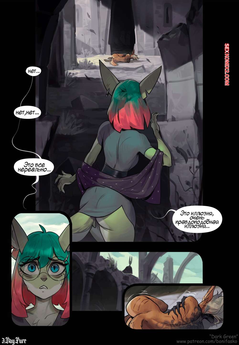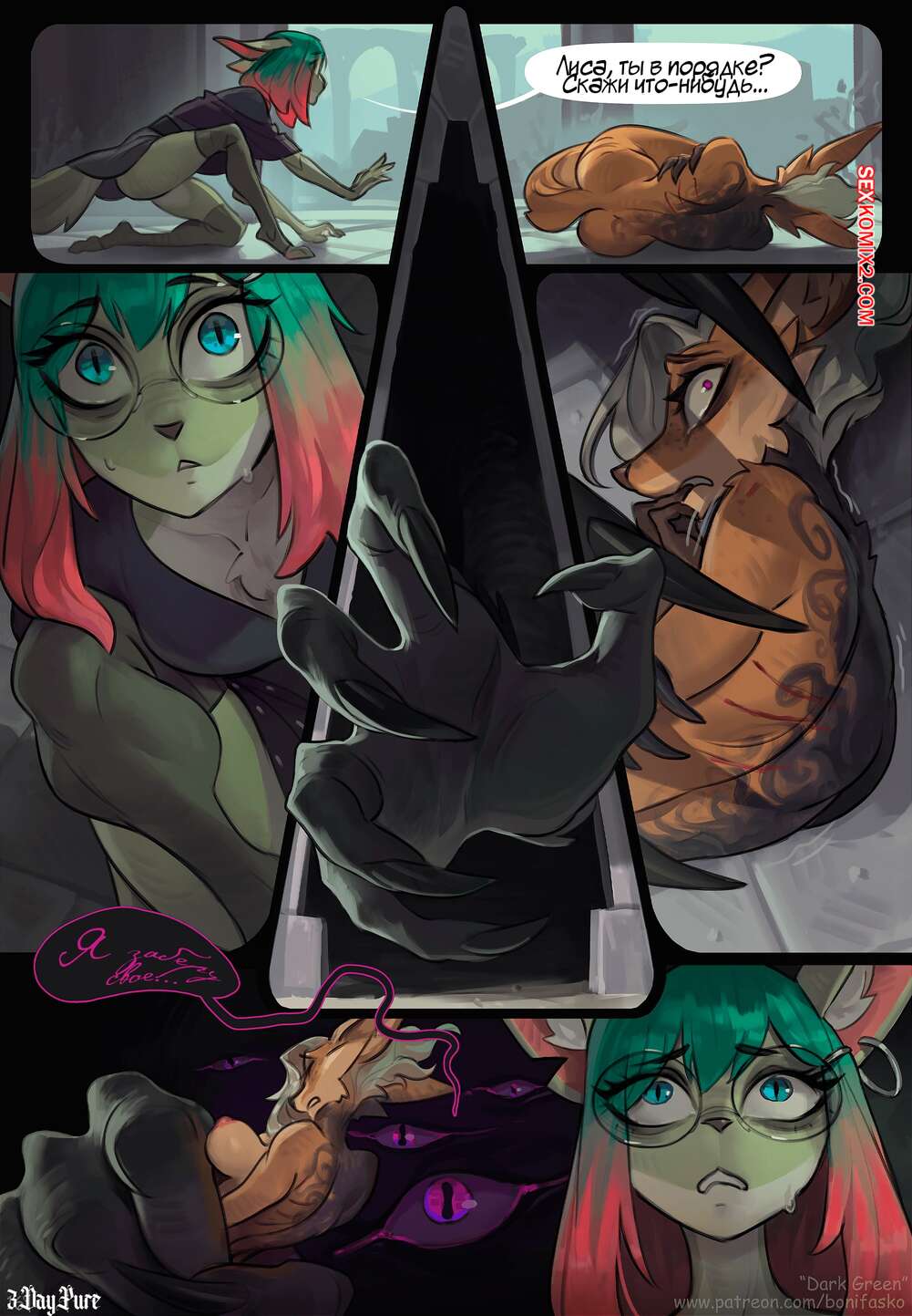 Порно комикс Темно зеленый. Dark Green. Bonifasko Извращенная фурри блондинка постоянно желает секса и трахает себя с помощью дилдо. Ей этого не хватает, поэтому она соблазняет парней и девушек вокруг, чтобы устроить групповую еблю.
