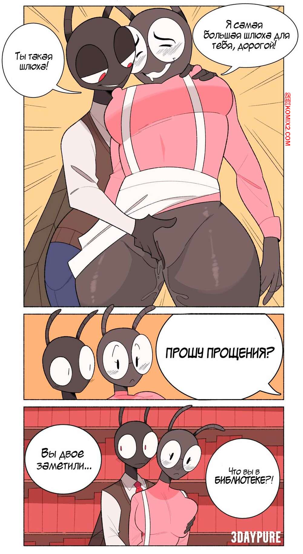 Порно комикс Опыт брака. Marriage Experience. Idolomantises Парень и девушка муравьи сыграли свадьбу и теперь они хотят познать как можно больше нового в сексе. Они занимаются им в разных местах и разными способами, от чего получают большее удовлетворение.