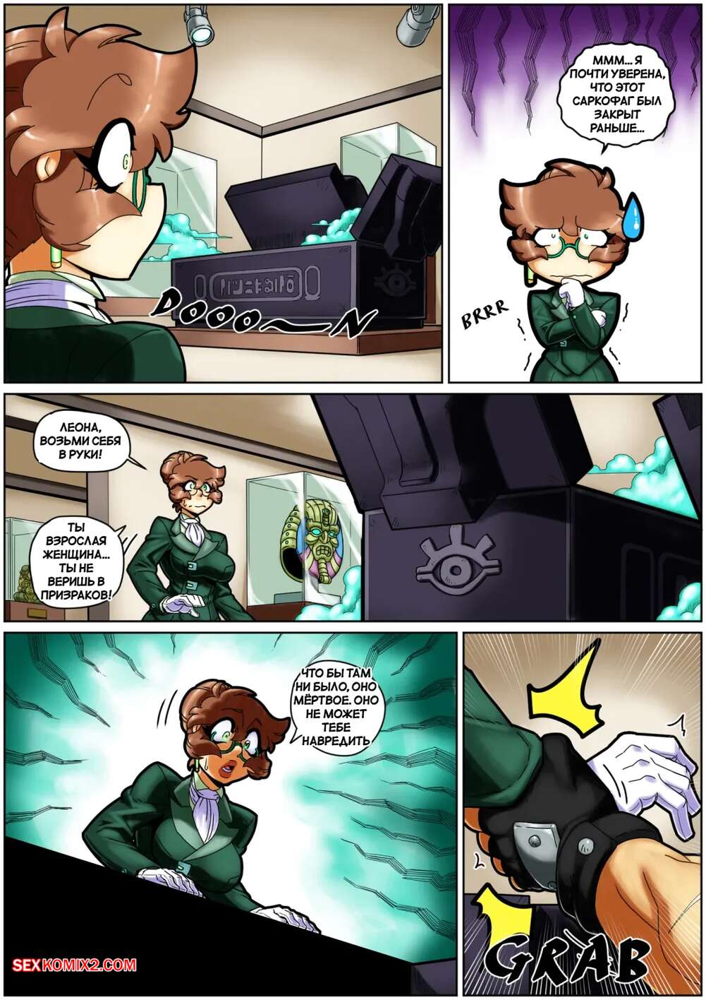 Порно комикс Саркофаг супругов. The Sarcophagus of the Spouses. MAD Project. Горячая брюнетка прогуливалась по музею и обнаружила открытие саркофага, куда ее затащил парень. Он стал вылизывать пизденку девушки, а она, возбудившись, стала сосать его член.