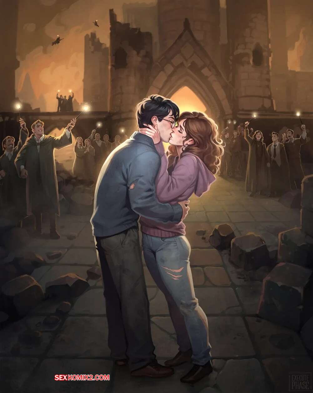 Порно комикс Гарри Поттер. Хроника волшебной пары. Chronicle of a Wizarding Couple. Executephase. Никто не знает что было между Гарри и Гермионой за кадром. Но теперь у нас есть эксклюзивные материалы того как они поролись перед тем как Рон смог вставить Гермионе.