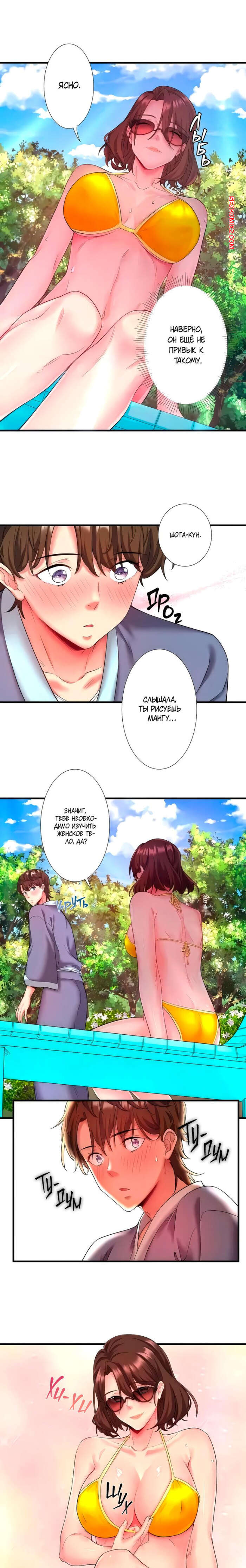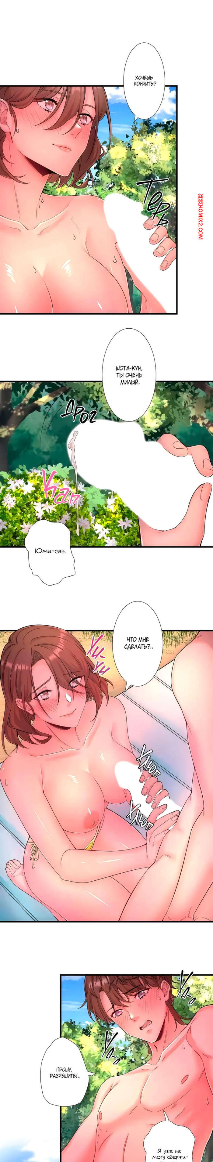 Порно комикс Горячий источник Сакурагецуро. Часть 14. Yozakura Кirishima Горячая брюнетка загорала у бассейна и позвала паренька присоединиться к ней. Красотка сняла купальник и возбудила парня шикарным телом, после чего стала дрочить его член и дала кончить себе на сиськи.