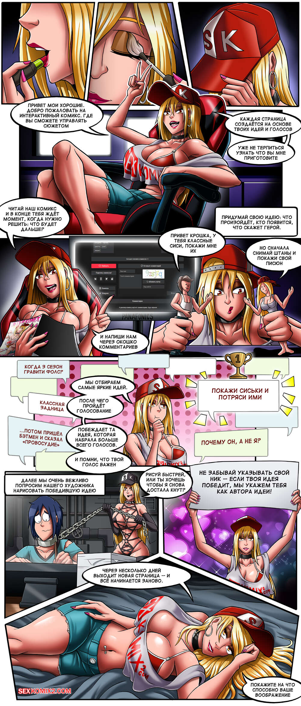 Это первый интерактивный комикс для взрослых, где история полностью формируется вашими идеями и голосами. В конце каждой страницы у вас будет возможность предложить свои идеи и проголосовать за понравившиеся комиксы сообщества.