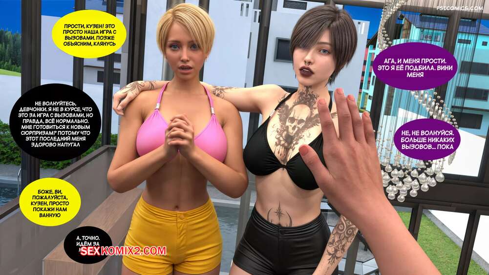 Порно комикс Нетрадиционная терапия. Часть 5. Alternative Therapy. POV3DVibes Две молодые девушки пришли домой к пареньку в сексуальных нарядах, желая с ним повеселиться. Красотки игриво ведут себя с парнем, чтобы соблазнить его и потрахаться.