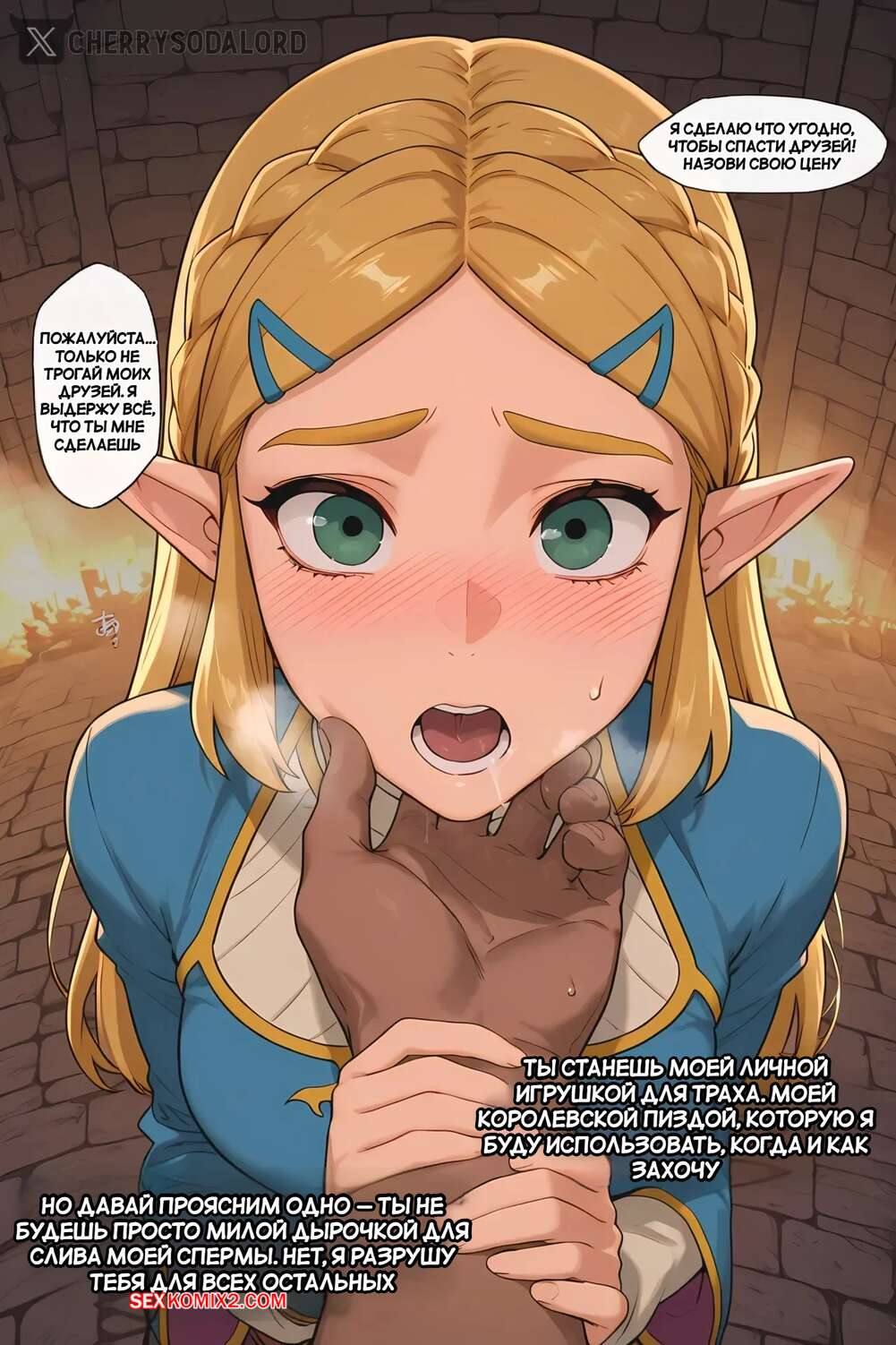 Порно комикс Legend Zelda. Принцесса разозлилась на Блейд. Princess Pissed On Blaced. Sodalord. Темнокожий парень соблазнил горячую блондинку Зельду своим большим членом. Принцесса встала на колени и отсосала хуец парня, после чего он выебал ее пизденку и заполнил своей горячей спермой. Теперь девушке не интересны маленькие белые члены.