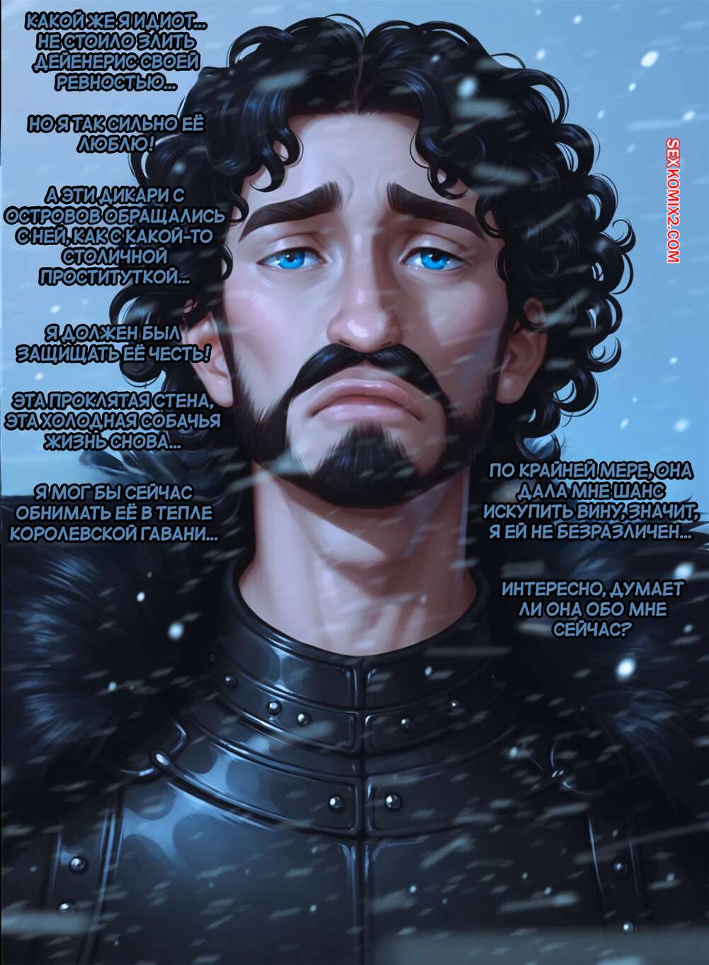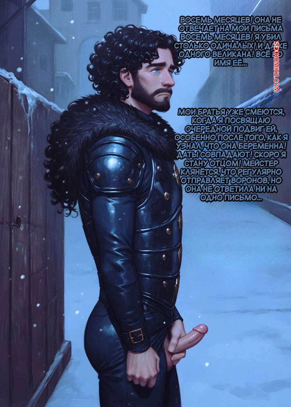 Порно комикс Игра престолов. Наказание за ревность. Punished for jealousy. Game of Bimbos. Королева устала от ревности Джона Сноу и отправила его в изгнание. Сама девушка отправилась к двум темнокожим стражникам, чтобы насладиться их огромными членами в своих аппетитных дырочках.