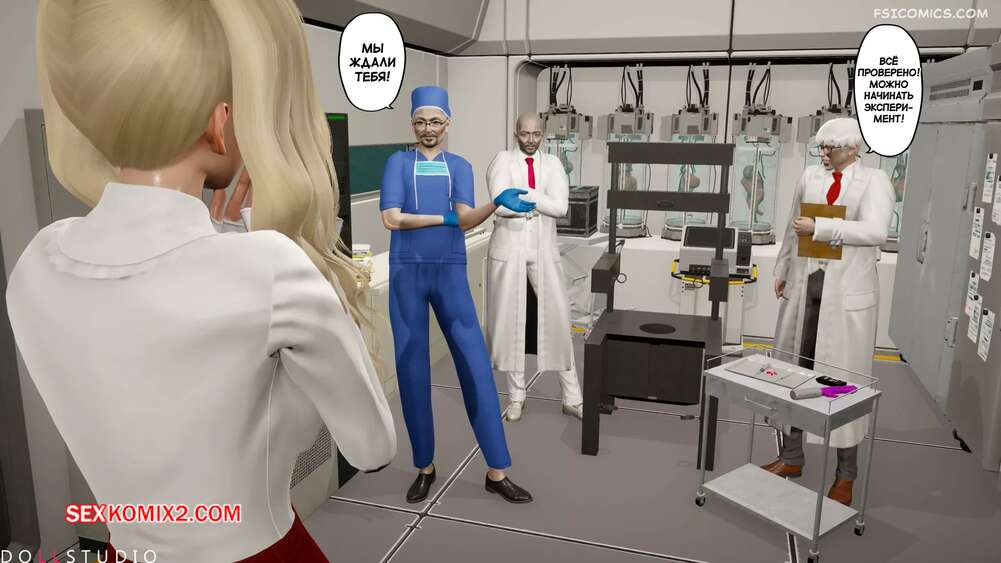Порно комикс Лабораторный питомец. The Lab Pet. DollStudio. Ученые провели эксперимент на горячей блондинке, после чего решили опробовать красотку на деле. Они поставили девушку на колени и дали отсосать свои члены, после чего выебали ее во все дырочки.